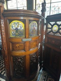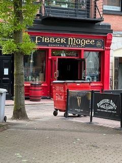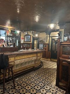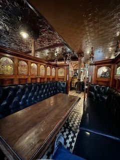 The owners are a mixed religion couple - the husband is Catholic and wife Protestant, and she adores everything about the royals. They compromised on the name the crown, but in smallest letters in Marquee outside and image of crown has to be walked on upon entry to the pub. The finishes inside and out are very detailed and unique. There are snugs lining the opposite side of the bar from 1880 built by Italian craftsmen working in the shipyards and on churches around Belfast they were designed to allow ladies and high society to have a drink without being overlooked.