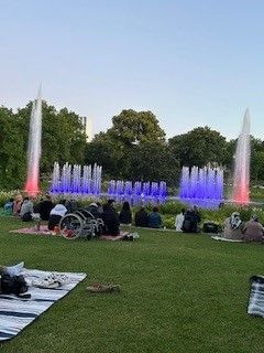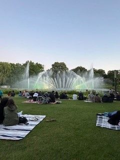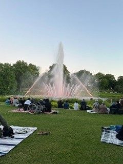 After the soccer game, we took advantage of the late summer daylight hours here in Northern Germany. We strolled the gardens for an hour and then found seating in the grassy area, surrounding the lake, to await the nightly fountain show. Can you believe it is 10 pm when show started! Look how bright the skies are! At 10:30, as we made our way home, darkness finally comes. Sunrise starts at 4:50 a.m.! I wear an eye mask to bed each night. Crazy German Summer!