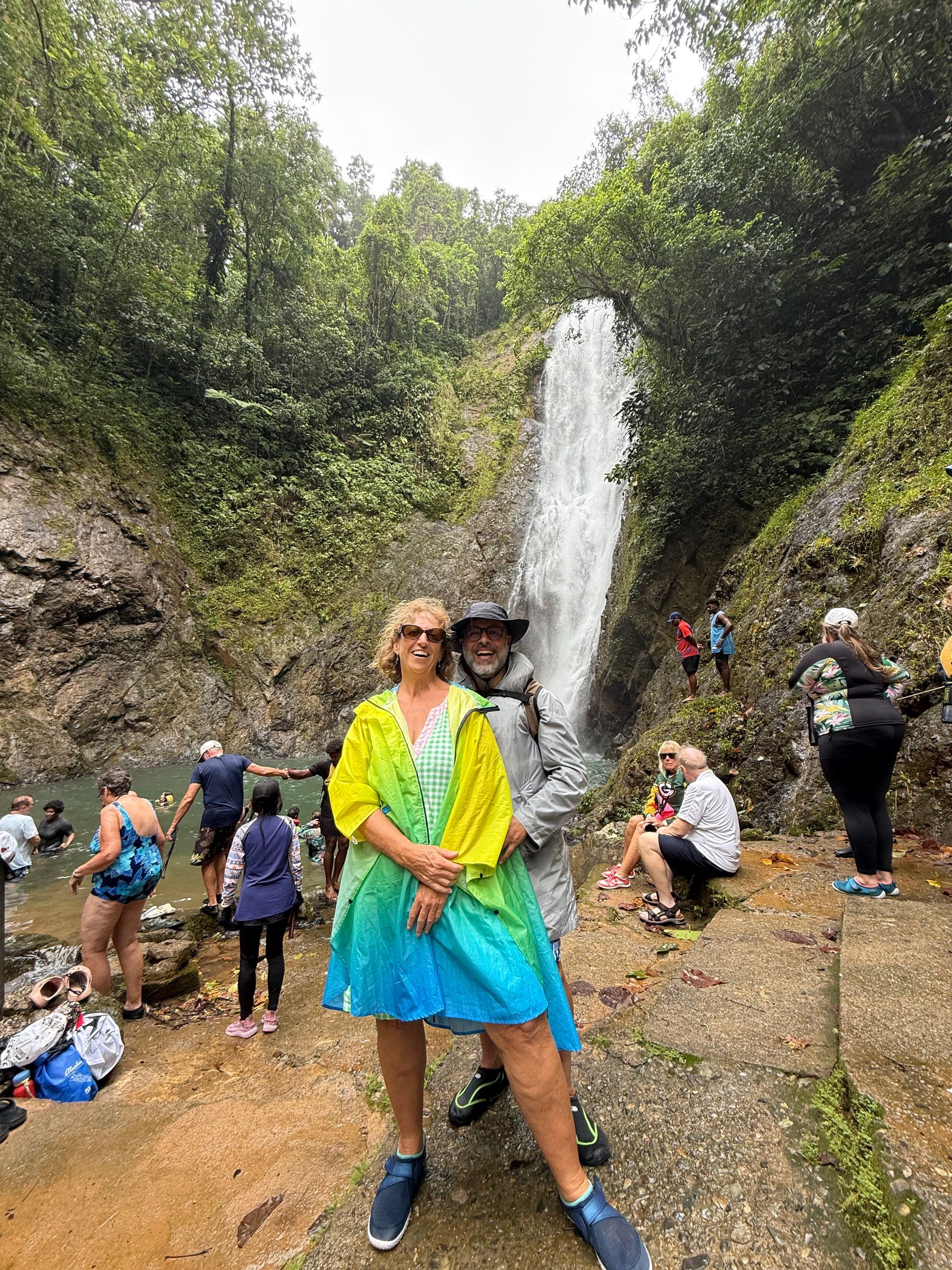 I organized a group tour for a fun day experience. We had a great day despite the rain that decided to join in. We started with a 45 minute van ride out through the city, into the countryside. Then we got in long boats and went up river to a waterfall, some swam or cheered on the guides to cliff dive. Then back in the boats to visit Sabata Village where 50 family members live as a community existing totally off the land, along the river. Next was a quick boat ride to our BBQ lunch spot. After lunch we got to tube down the river, through light rapids, for just about an hour. We ganged our tubes together with the guide - we had a chain of 14 in my group and the guides totally blew us away singing hymns for a good chunk of the journey. It was truly moving in that place with the rain drizzling and all of us linked together. Loved it!