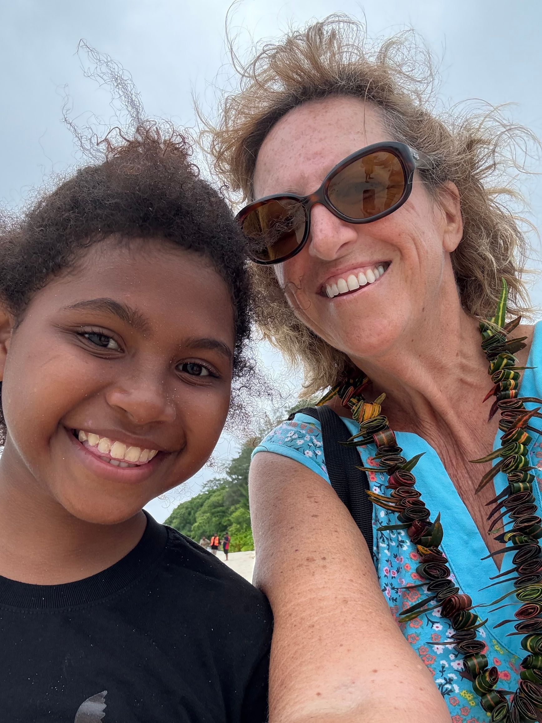 Next we drove a little more, to meet our dinghy boats, to take us across the Milne Bay to Boia Boia Waga Island to snorkel and have a picnic lunch on the beach. We were greeted by local children and each given a hand made lei.The reef was shallow and had lots of varieties of fish and coral I have not seen prior.