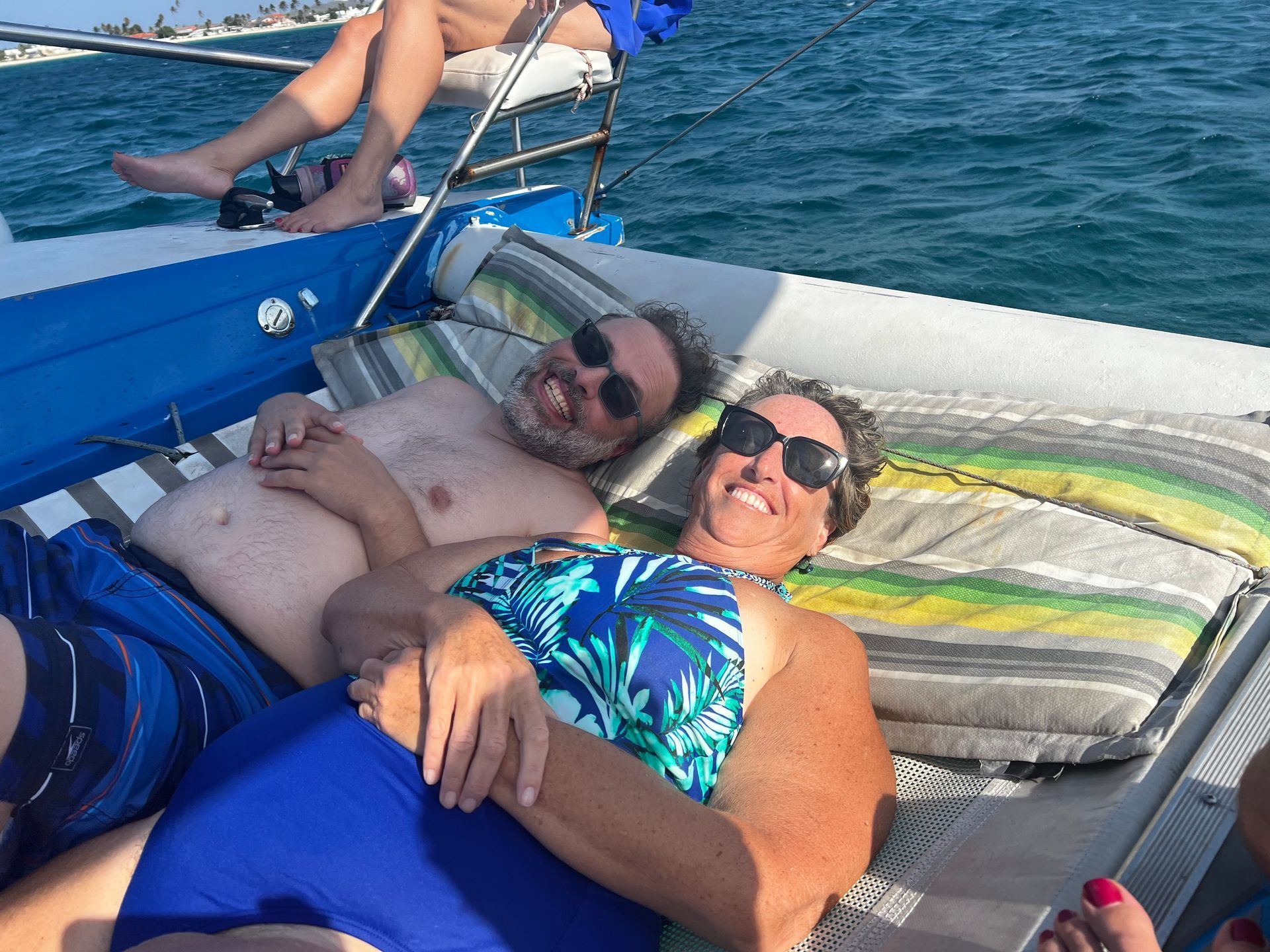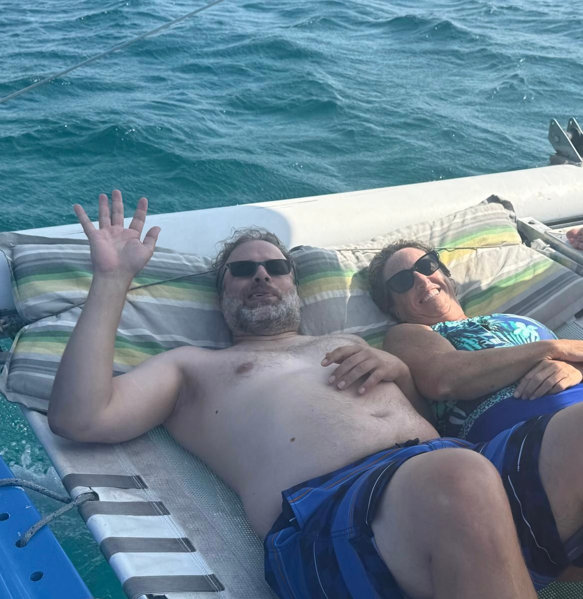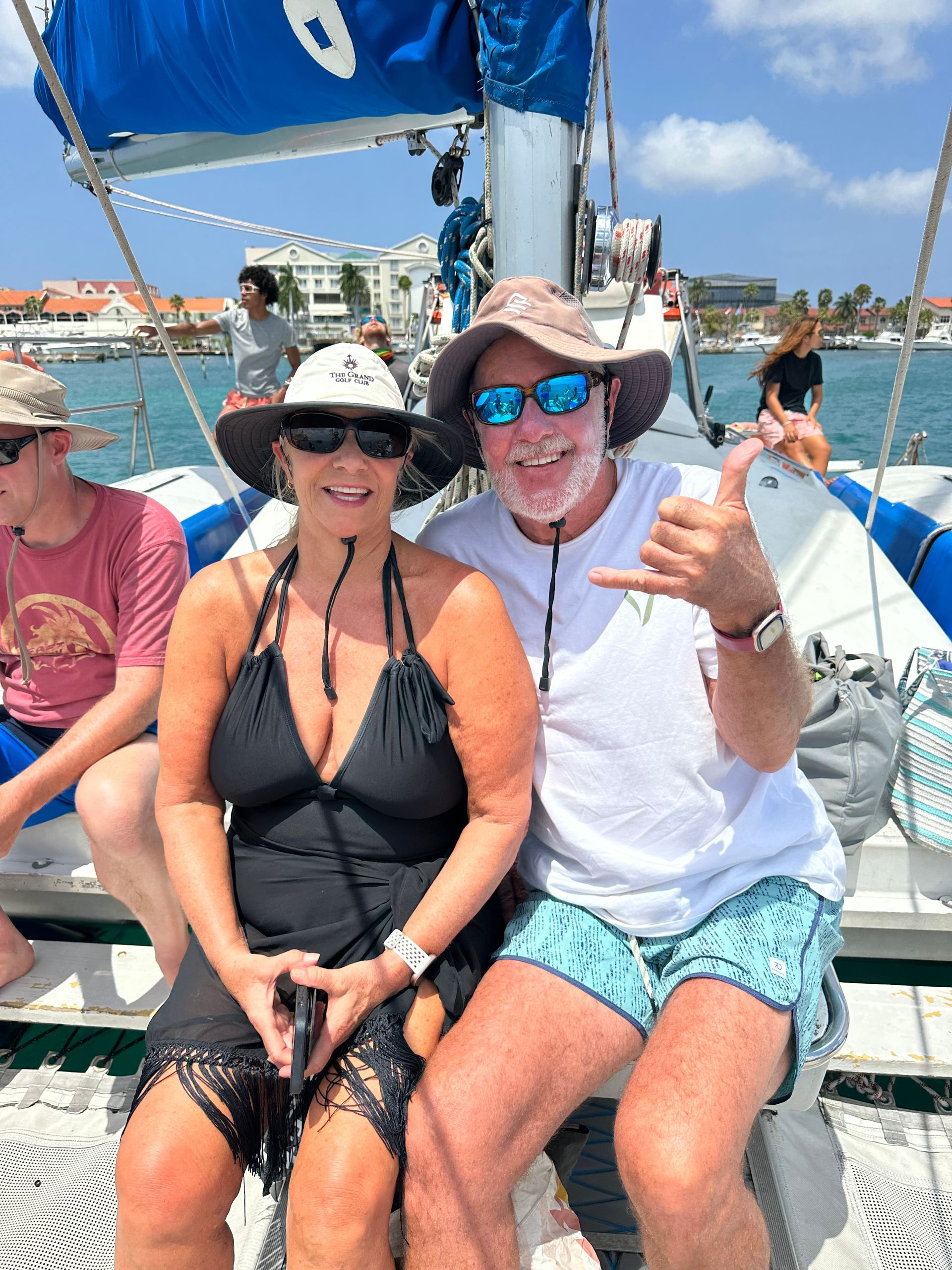 We had another FUN day sailing this time on a Catarman boat with a small group of friends the Odyssey. Callie put the afternoon together for us and we had a great time! Sheri & I above cruising past the Odyssey docked in port.