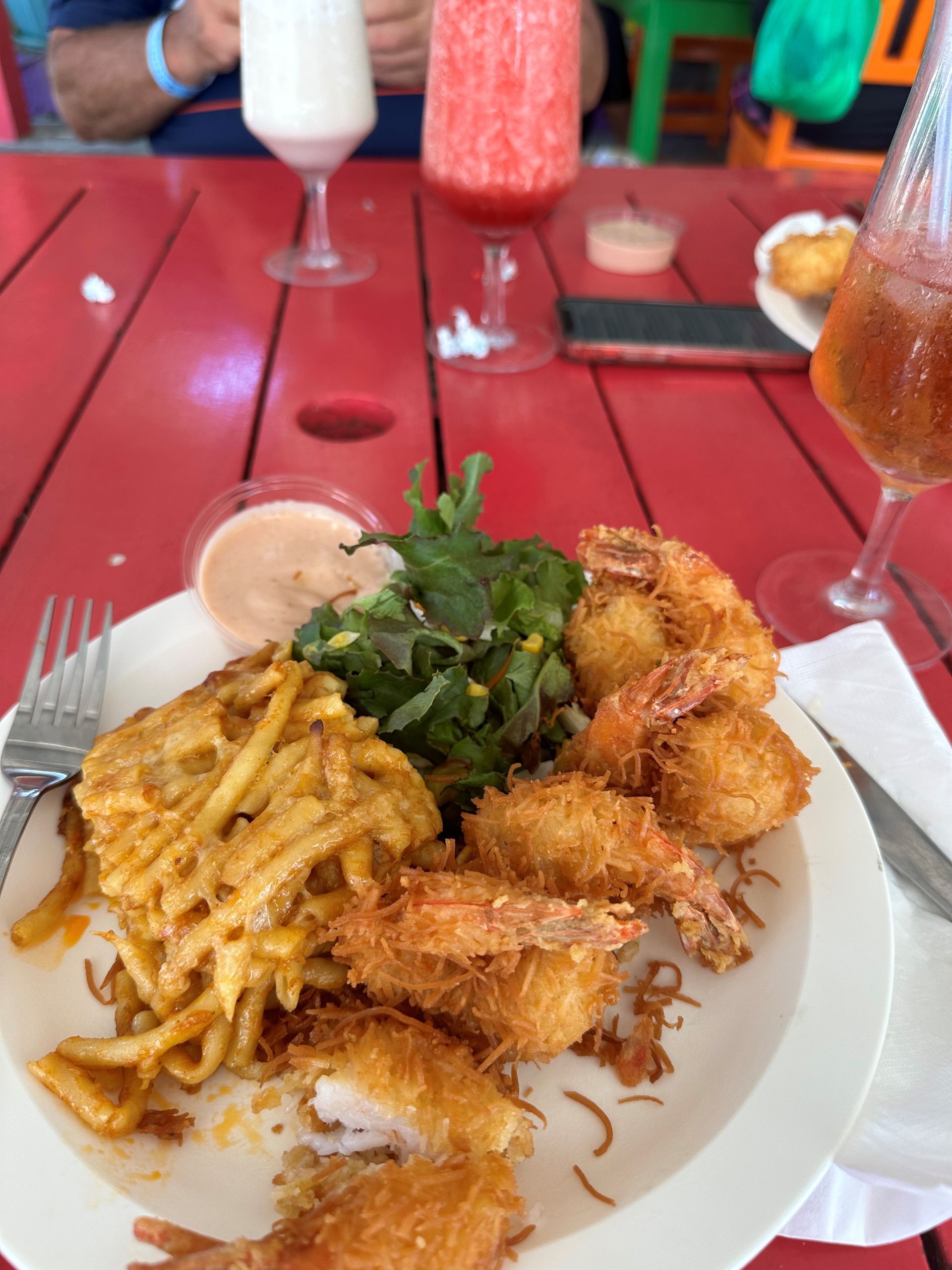Just went for lazy tourist day today! It was a warm, sunny day with a nice breeze blowing off the ocean! Did a stroll through the local shops surrounding the cruise terminal. There were 5 other large ships in port! The Boatyard bar & restaurant had a deal, right on the beach front, where you got a free shuttle from the port to restaurant (about a 20-minute ride), an entry cocktail, a beach lounger and umbrella & a snorkeling trip via private boat out to a reef, for 45minutes session snorkeling with turtles and fish. Had a yummy lunch of coconut shrimp and a mango smoothie. The ocean water and powdery sand was truly heavenly. We just relaxed, enjoyed the music, breeze and conversations. I am truly thankful for this blessed life I am living.