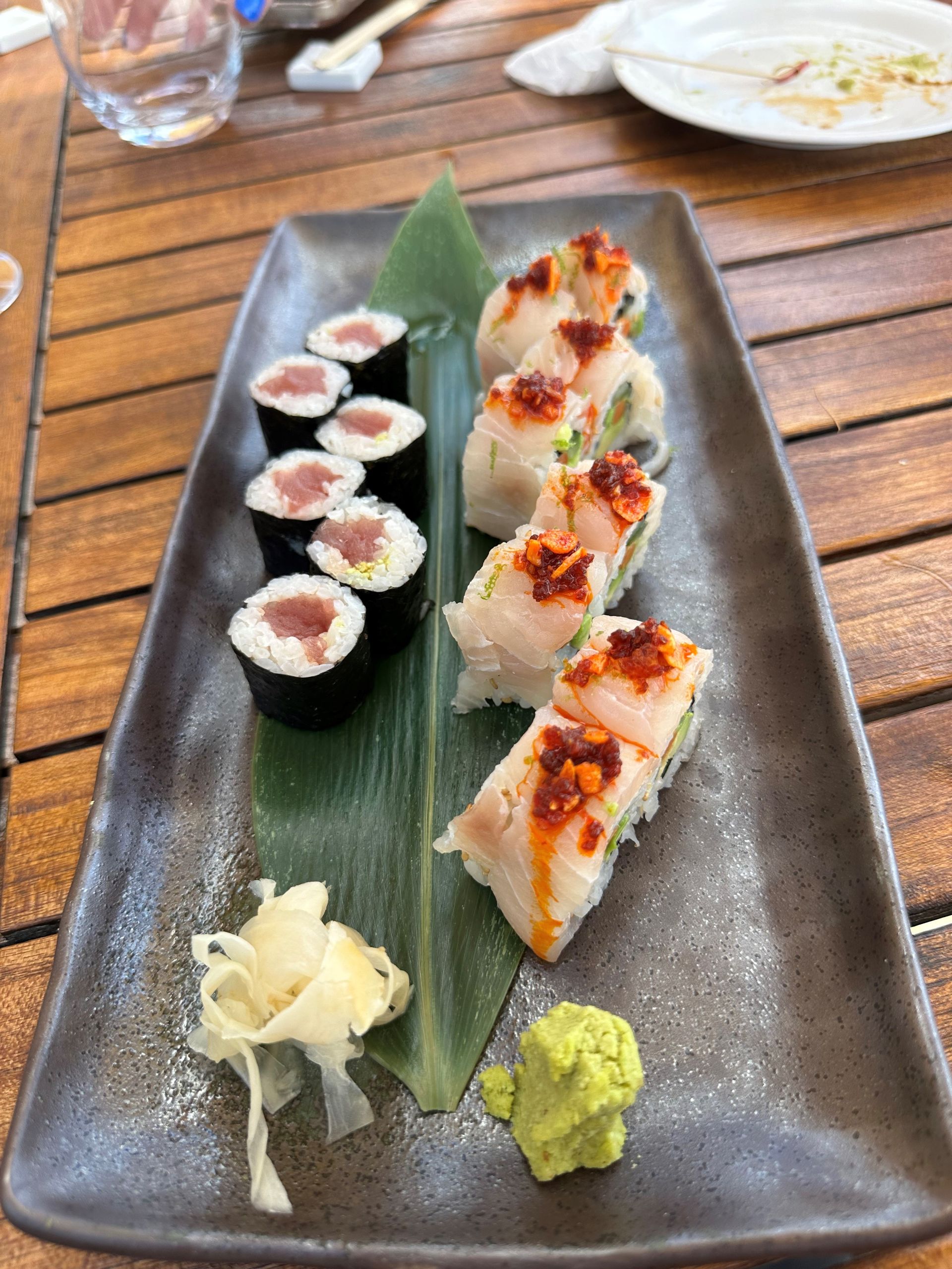 Turns out Robert DeNiro owns part of this Paradise, and he has a home right inside the NOBU property, and he just happened to fly in yesterday to greet us! While we may have only seen the red roof of his house and a picture of his private plane from our shuttle driver, we did see the 2 helicopters, that flew into his property, as we were dining and promptly decided when we come back again, that is how we will arrive!