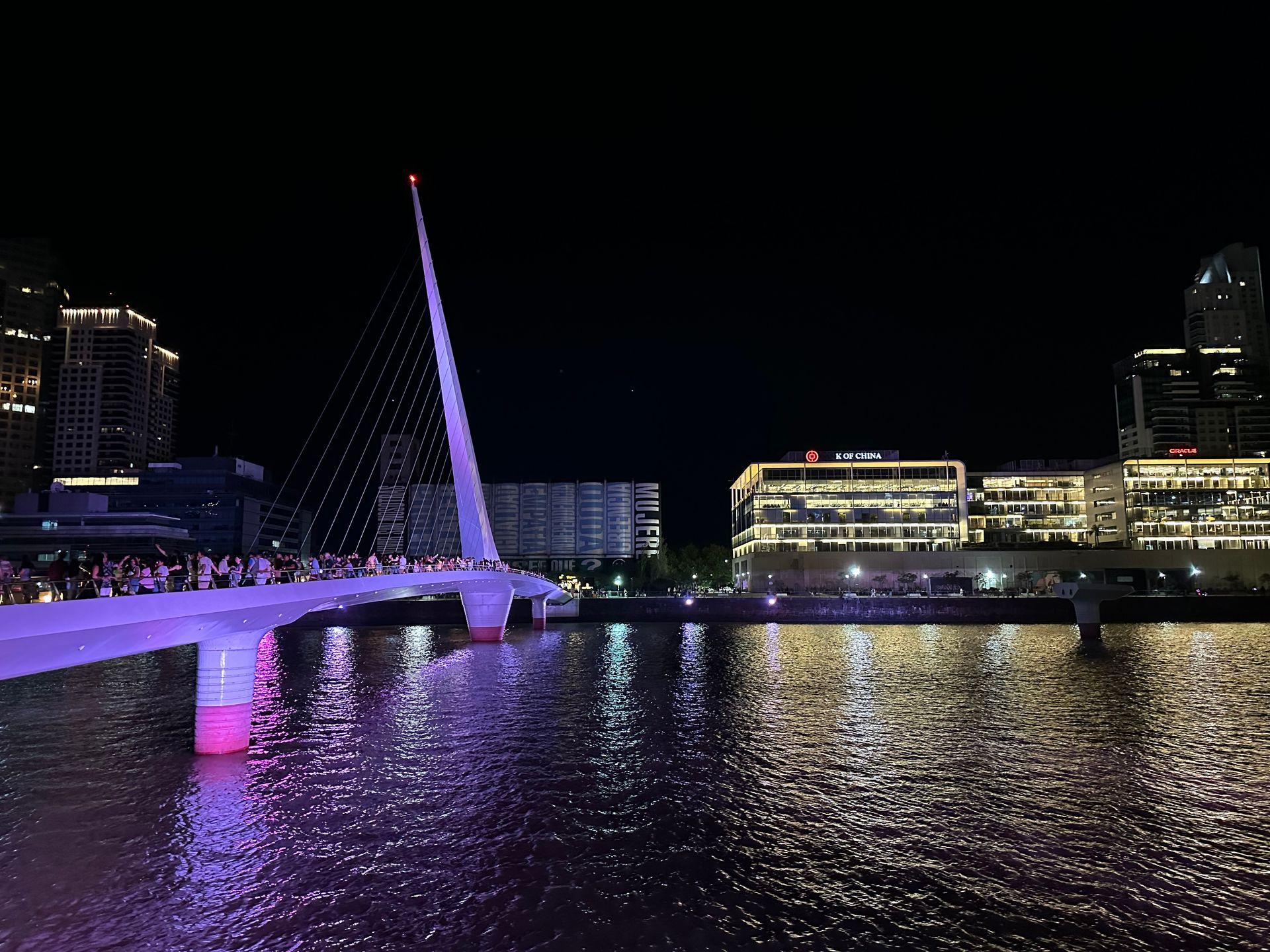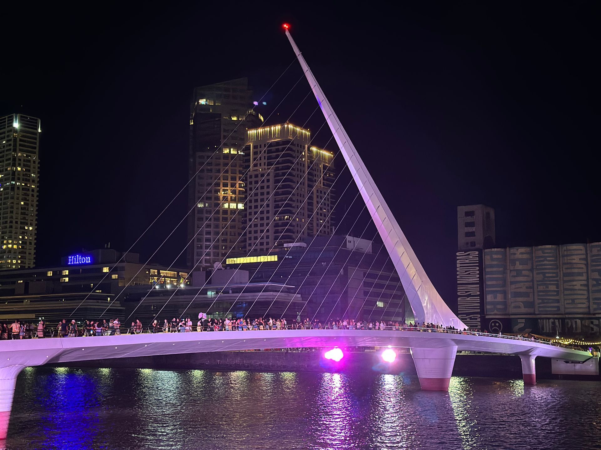 We then headed to the Puerto Madero commercial area alongside the river. The Puente de la Mujer is a rotating footbridge with a cantilever spar cable that is illuminated at nightby showcasing it's asymmetric lines. Architect was Santiago Calatrava. Here we had a dinner reservation set up by Bob Meyer's childhood friend and local resident Mirta ( retired attorney) , who spent the afternoon with us, giving us local insights to the City and People.