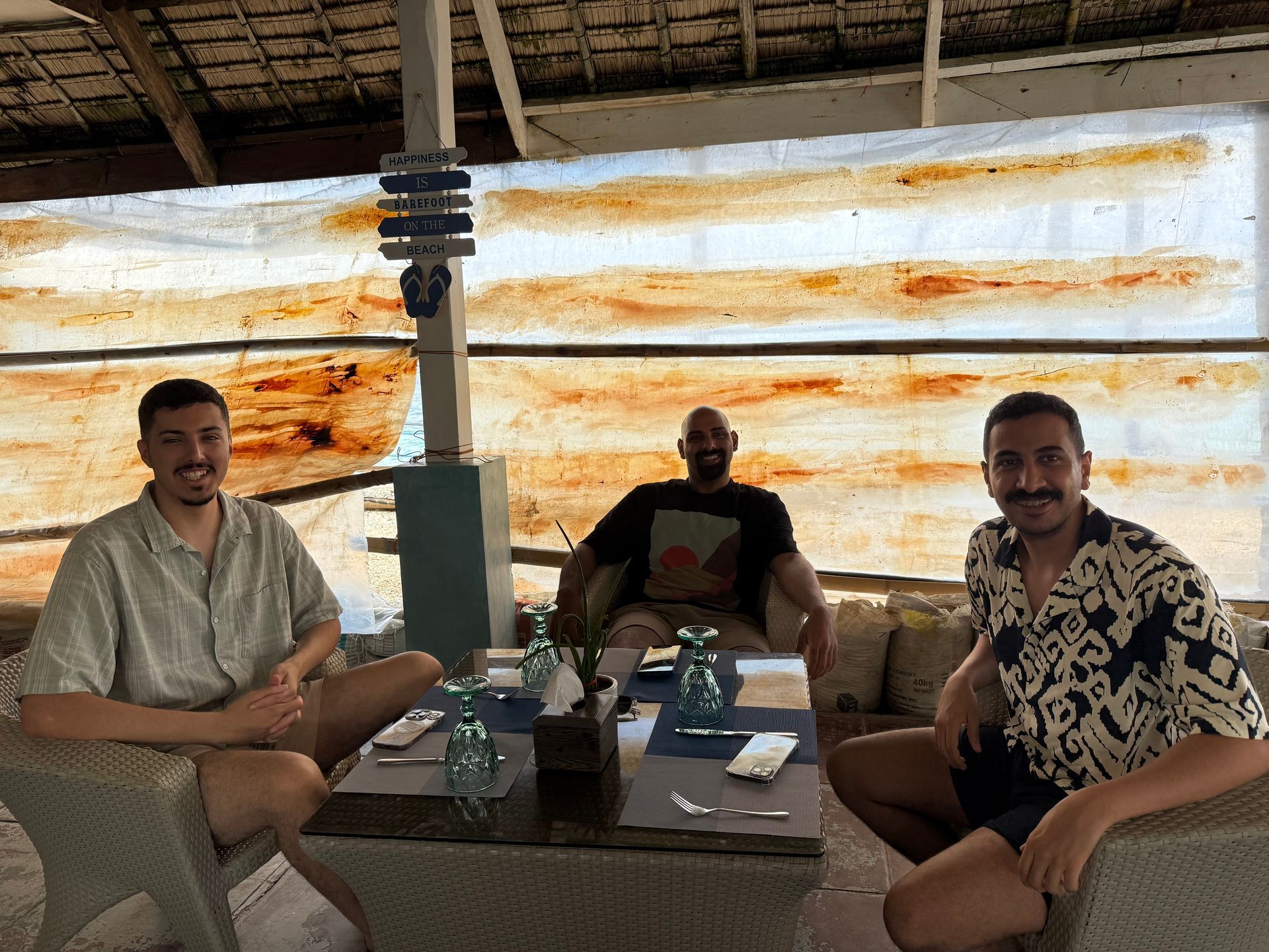 At breakfast we met this interesting trio from Saudi Arabia - 3 friends, all with different engineering backgrounds, who were using their yearly vacation allotment, of 30 days to travel around south east Asia. They have enjoyed doing this before and were excited to see as much as they could. They were staying at a villa down the road and were taking an island tour after breakfast on motor scooters. We exchanged info and they wanted to follow along with my blog, to see where we went next! We really enjoyed chatting with them.