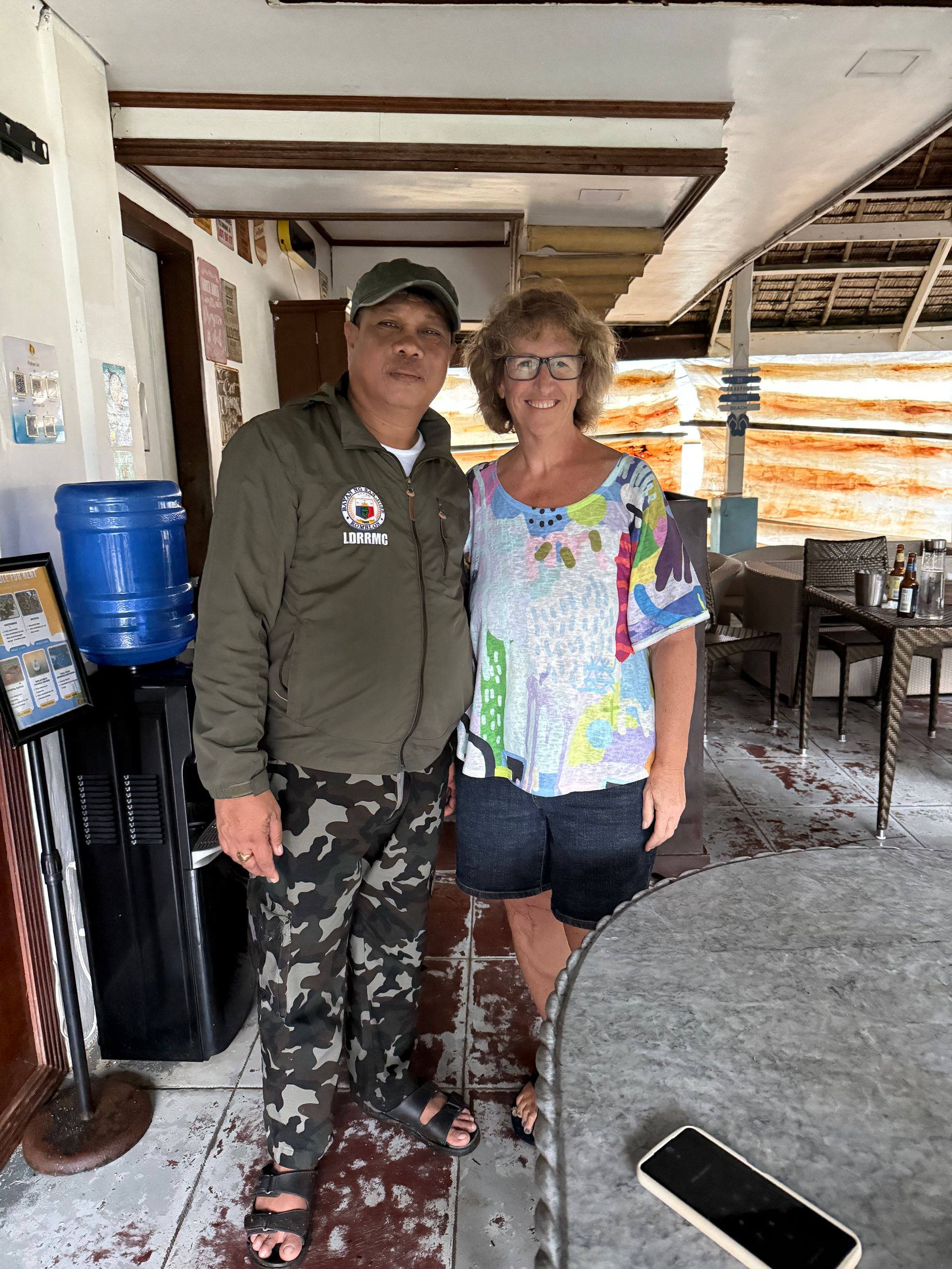 We lost Memo and Susan from group at the Clark Airport! Unfortunately, they had booked the wrong date for the flight and the plane was full. With no other options, they sadly had no other choice, than to go back to the SHIP. They were supposed to be in the speed boat with Bosco & I and also at our Resort. Next, tides at our resort were off, so we couldn't arrive by boat as planned, so we had to do the 2nd van. Once settled the10 of us united for a lovely beach dinner at Beach House Resort, a five minute walk from our resort. We played a lively game of Catch Phrase after dinner and David the Resort owner gave us some of the island's history.