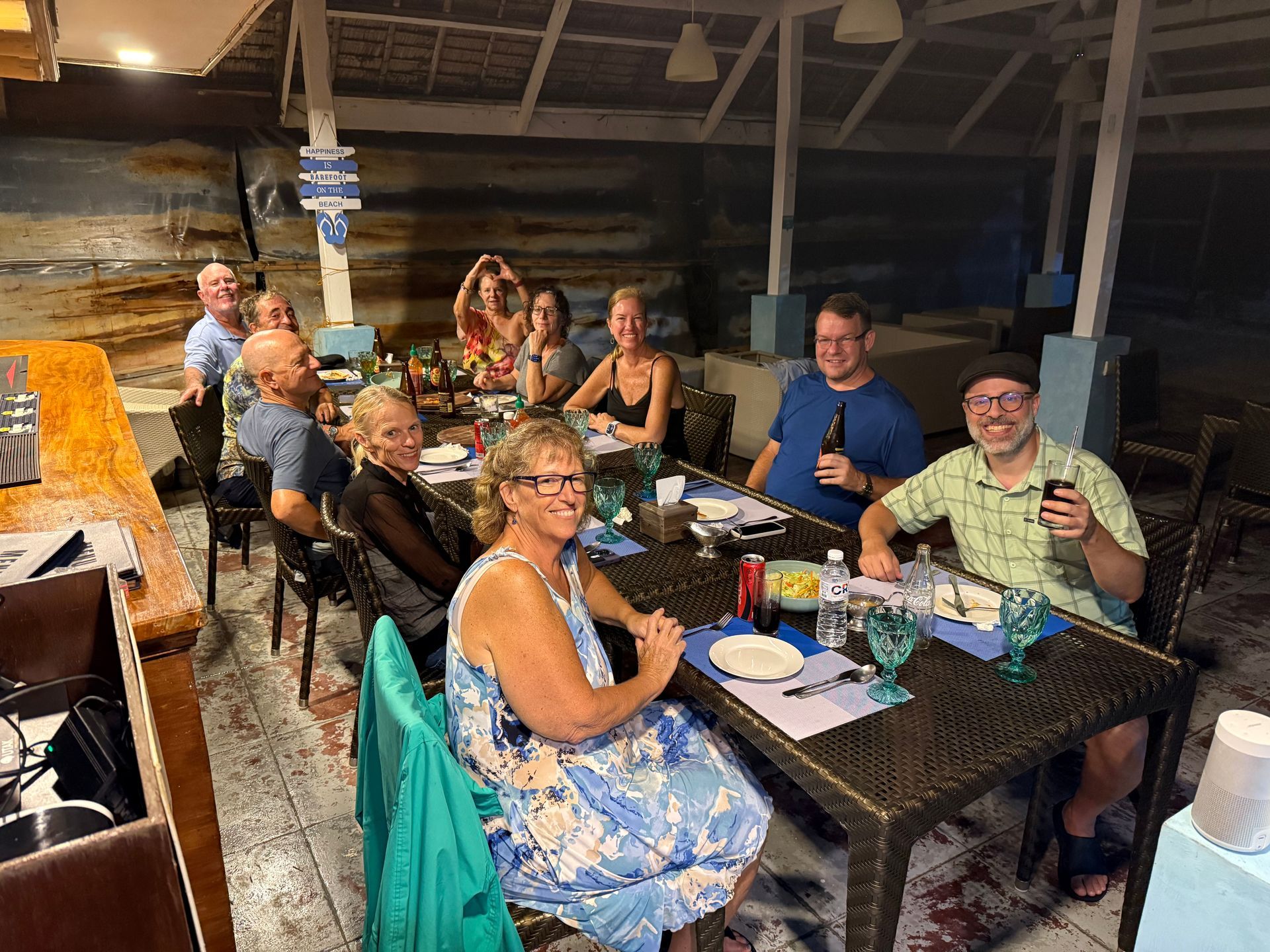 Phase Ten, to pass the time. By four p.m. the worst was over, the mayor stopped by to make sure all ok and we hosted the rest of our gang from Beach House, at our Resort for dinner.