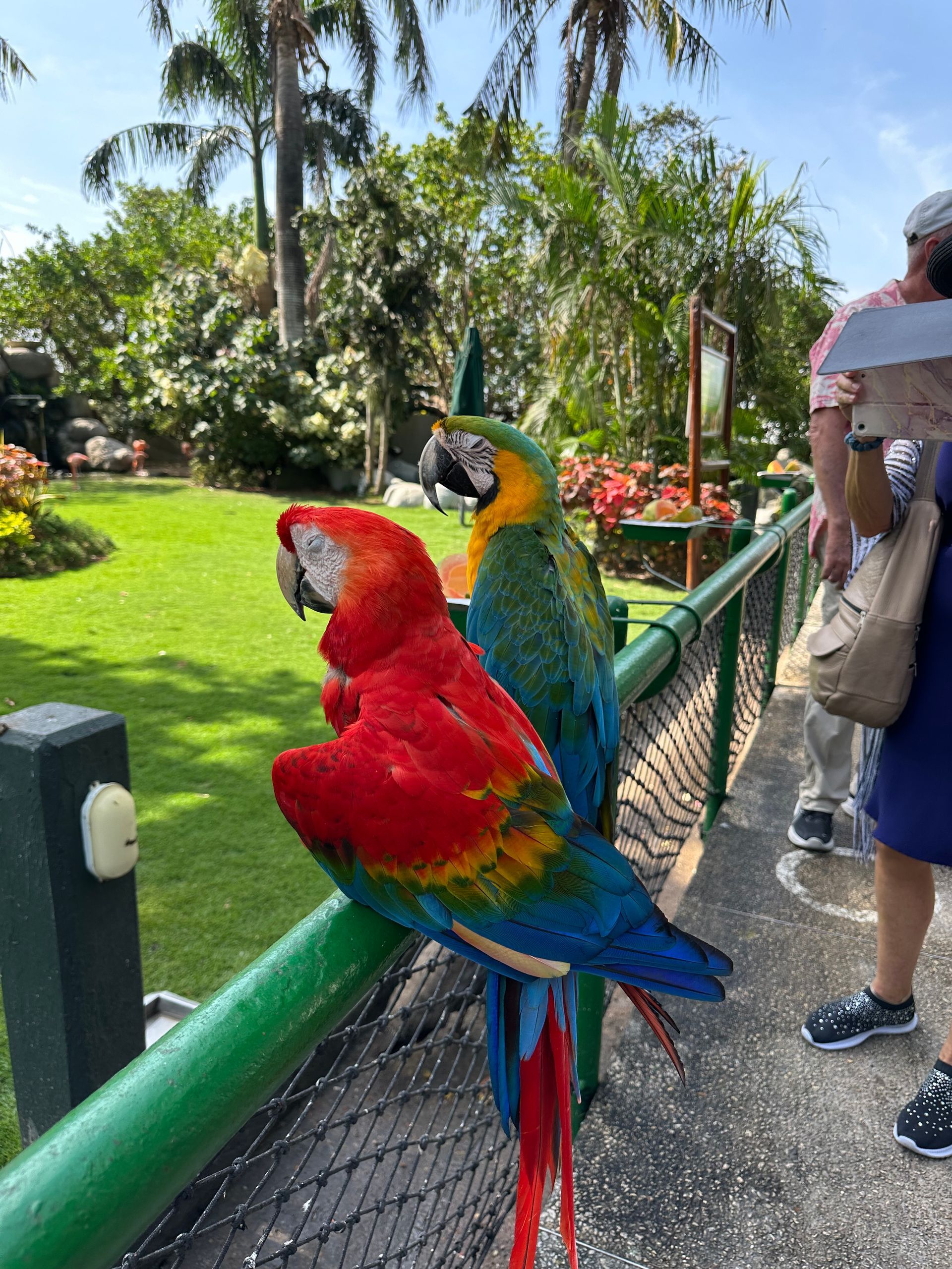The PORT OF CARTAGENA wins the BEST PORT EXPERIENCE prize so far; they had an aviary just for cruise passengers to enjoy along with the typical shops and cafes. The Birds were free to roam all over, plentiful and active! Quite the Hello!