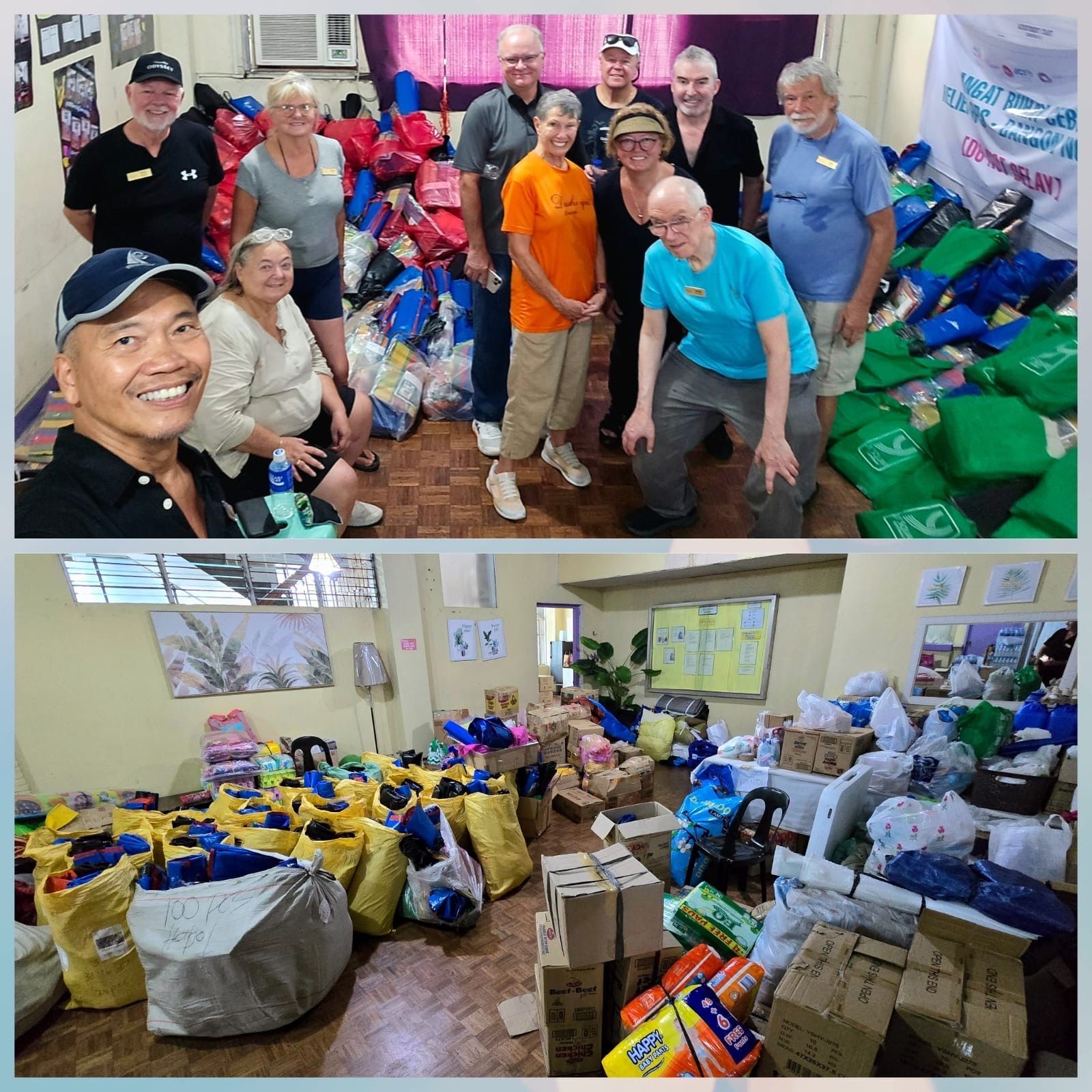 Our residents rallied to contribute in a variety of ways i.e. cash donations, volunteer work, prayers and spending lots of dollars in Port, to support the local economy. I went to a local college and volunteered my time, with several other residents, to help with emergency provisions any way we could. Our Ship's Purser was able to procure a truck load of food staples and we were able to sort them into care packages, for the affected families.