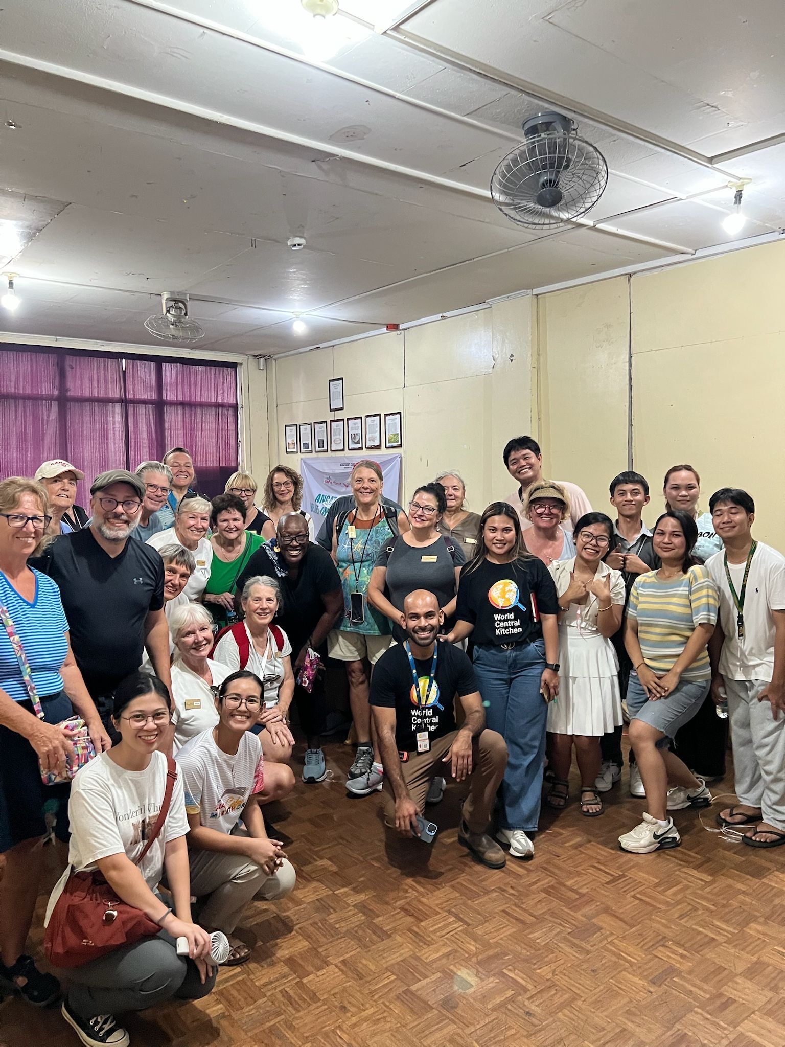 Above some photos of our volunteer groups. Some cut tarps and rolled into useable bundles. We packed bags with water, bug repellent, blankets and sanitary products. We chatted with the local college students who organized things in their main building. World Central Kitchen, had volunteers on site to coordinate food efforts. We formed a large human chain to get all the organized supplies off the 2nd floor, down to the waiting trucks. It felt good to help in any way they needed!