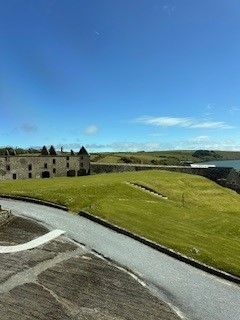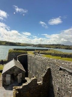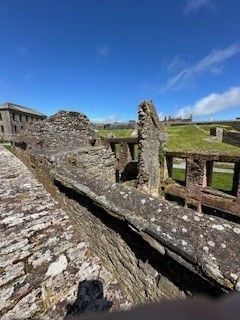 We enjoyed the rare afternoon sunshine climbing the remains of Charles Fort, which was built from 1678 to 1685 by the British Army. It was the largest engineering project undertaken by Ireland in the 17th century. Laborers worked a 12 hour day and received a daily rate of sixpence. As Ireland's most southern port, Kinsale (town just inside bay) controlled communication lines with Europe and was a wealthy center of trade.