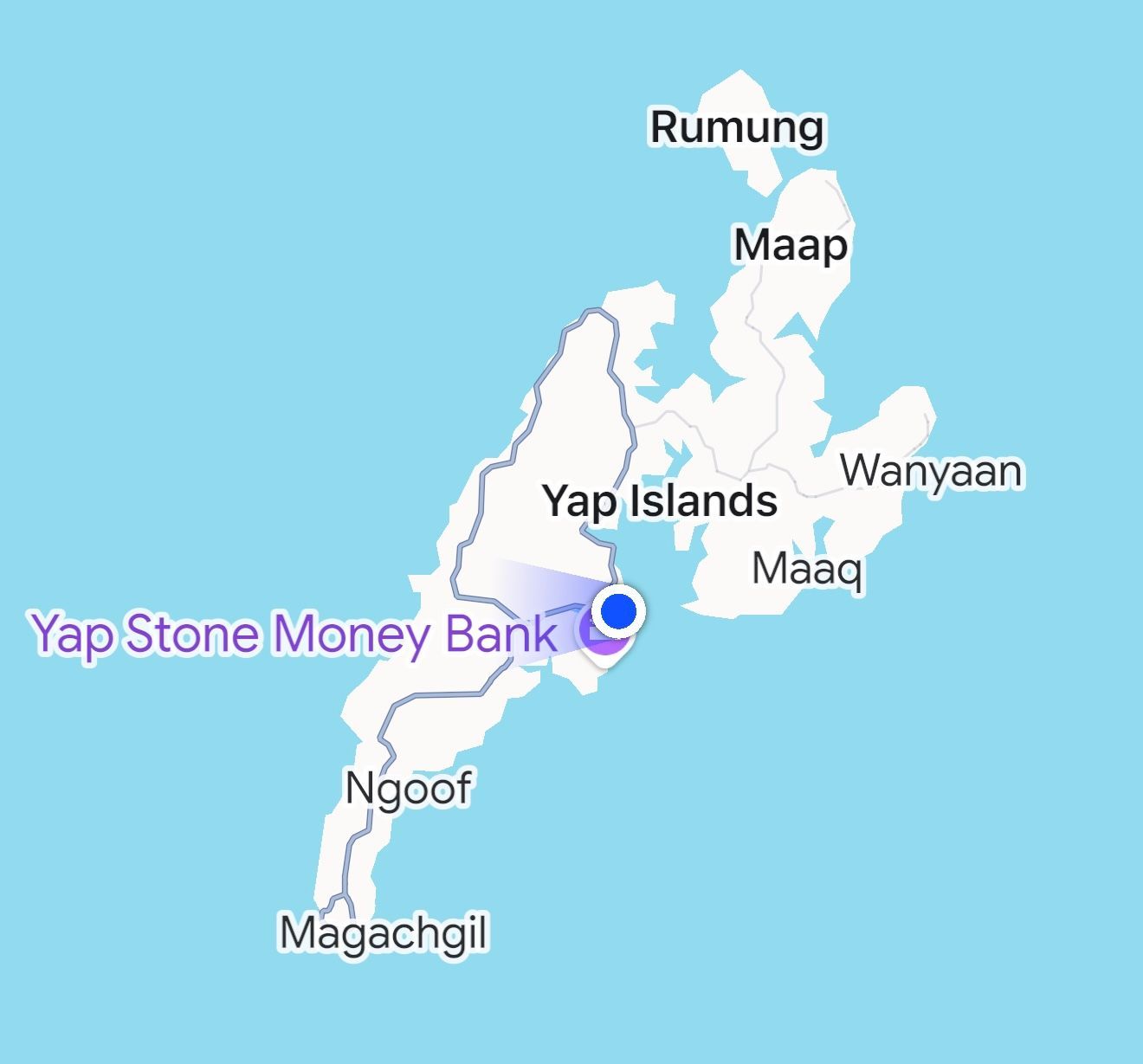Colonia (population 3,100) is the Capital and Harbor town of Yap State (population 11,600) one of four states in the Federated States of Micronesia. We are in the Pacific Ocean or Philippine Sea just north of the equator, Papua New Guinea and Australia.