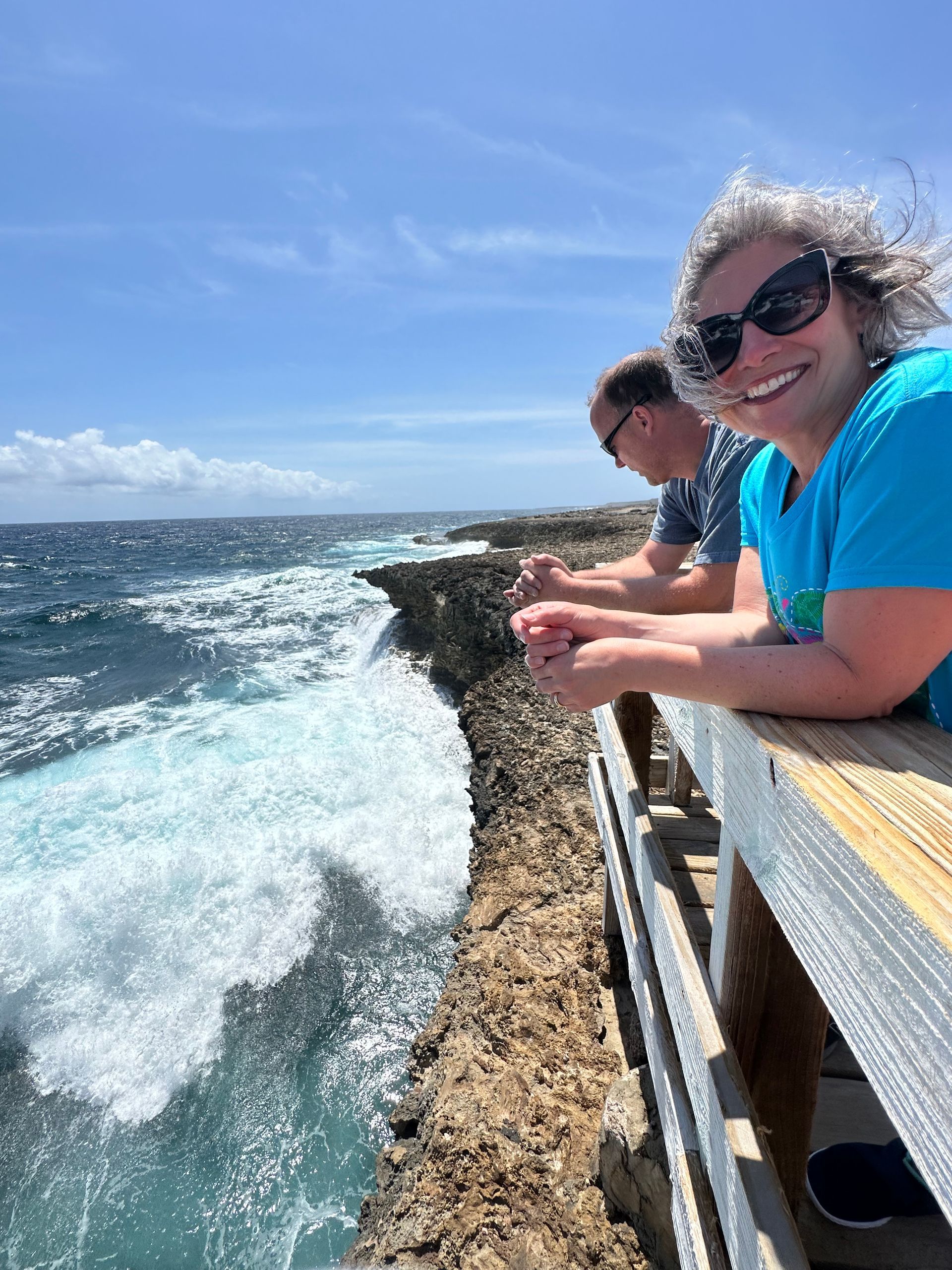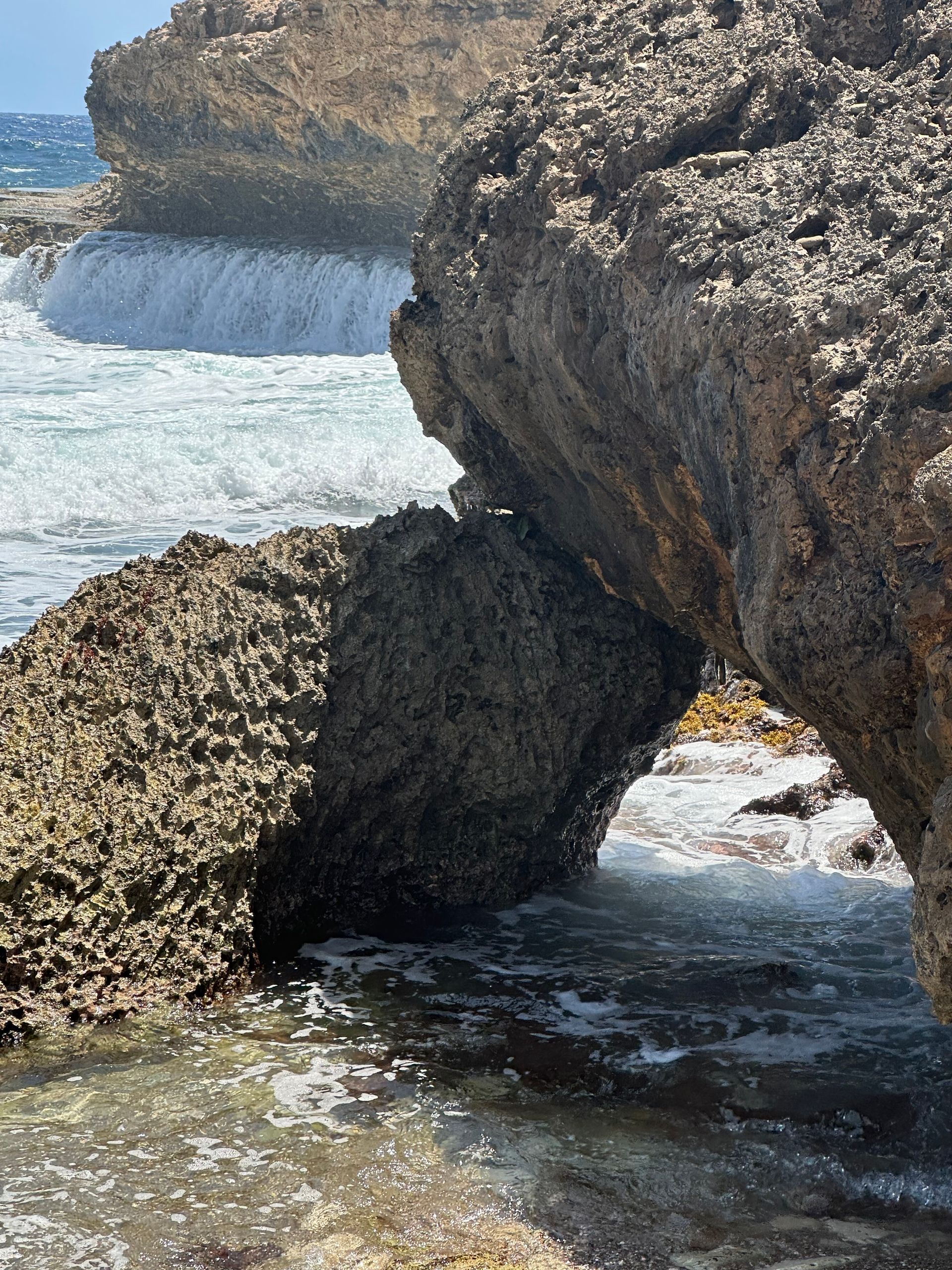 We hired a driver to take us on a tour of the island's north end, which is loaded with beaches, wildlife and Sheta Boka National Park ( which has bokas or blowholes and caves). The driver brought his daughter and wife along with us because they were on Holiday for Easter week, along with a lot of other tourist, making this area very crowded! We started at the caves, before the crowds were too much. They called the cave Nature's movie theater. It was mesmerizing to watch the waves crash in.