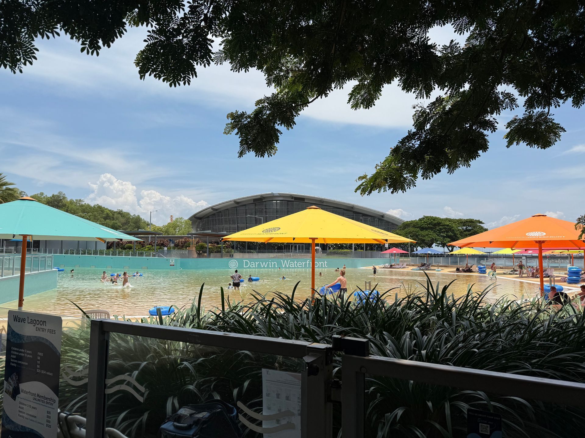The Port is a fairly quiet place. They get 160 cruise ships on average in their winter months - because of their warm climate ( they are the Florida of Australia). But in their summer season, as is now, they only get roughly one ship a week. Cyclones are common here and on Christmas Eve 1974 Cyclone Tracy devastated the City of Darwin, and practically everything had to be rebuilt. The waterfront area where we docked is loaded with mid rise Condo's, Bars and Restaurants. You can't swim in the ocean here, because it is loaded with Crocodiles and Box Jelly Fish! So the government built a FUN Wave Lagoon Pool in their Harbor, as a center piece for the Condo's and Restaurants that is very reasonable priced.