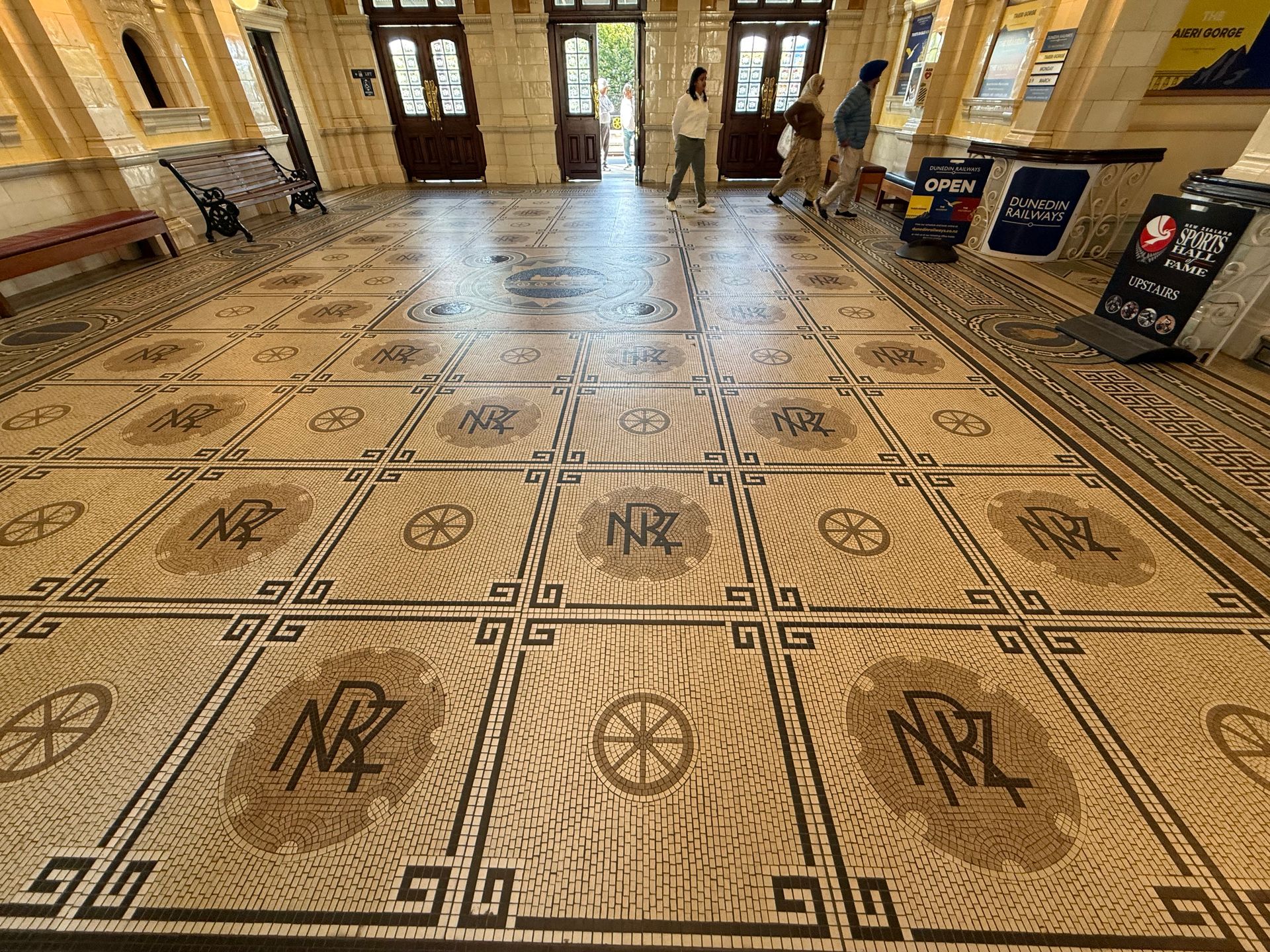 Next, Theresa dropped us at the Historic Dunedin Railway Station. It was built in from 1904 to 1907, one of NZ's most photographed buildings famous for it's dramatic black and white stone ( sourced locally) fascade and intricate mosaic tile floors inside. The NZ architect was George Troup.