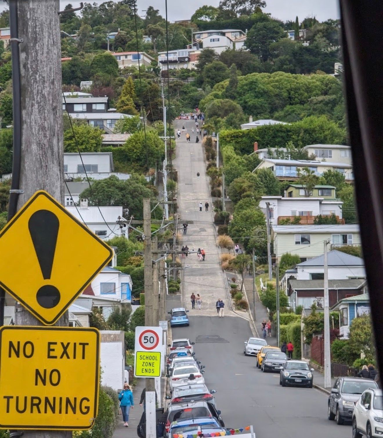 DUNEDIN, NEW ZEALAND was a quick 25 minute ride inland from the Port of Chalmers. We were going to take the bus, when fellow Resident Theresa, offered us a ride, as she had to return her rental car. This allowed us to make a stop along the way at Baldwin Street.
