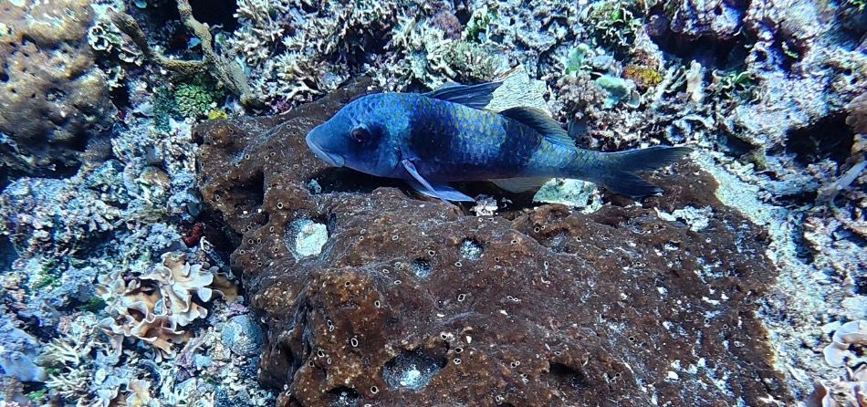 Most days, we were up at 6:45 am, at breakfast at 7 and then on the boat at 8 am. Then I did two 60 minute dives, with a coffee/ tea break in between. Then we would boat back to the Resort for lunch and a rest. Some afternoons at 3, we would do a snorkel, at a closer reef or island to the Resort. Here's some of my best photos and videos from a variety of dives.