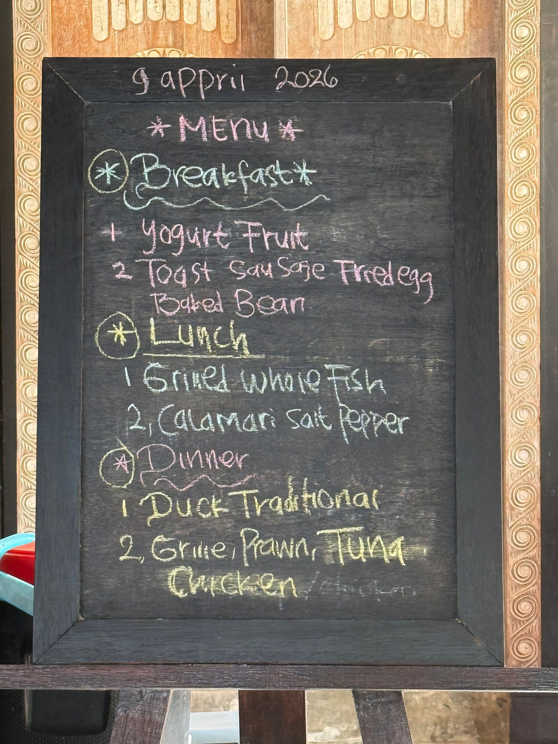 Have I mentioned how good the food at Eco Cove Resort is? Everyday you are given a choice of 2 entrees for breakfast, lunch and dinner. Plus they put out a snack every day at 4pm and you get tea/coffee and cake or savory pastry, every morning outing between the first and second dives or snorkels. Here a sampling and some of my favorites!