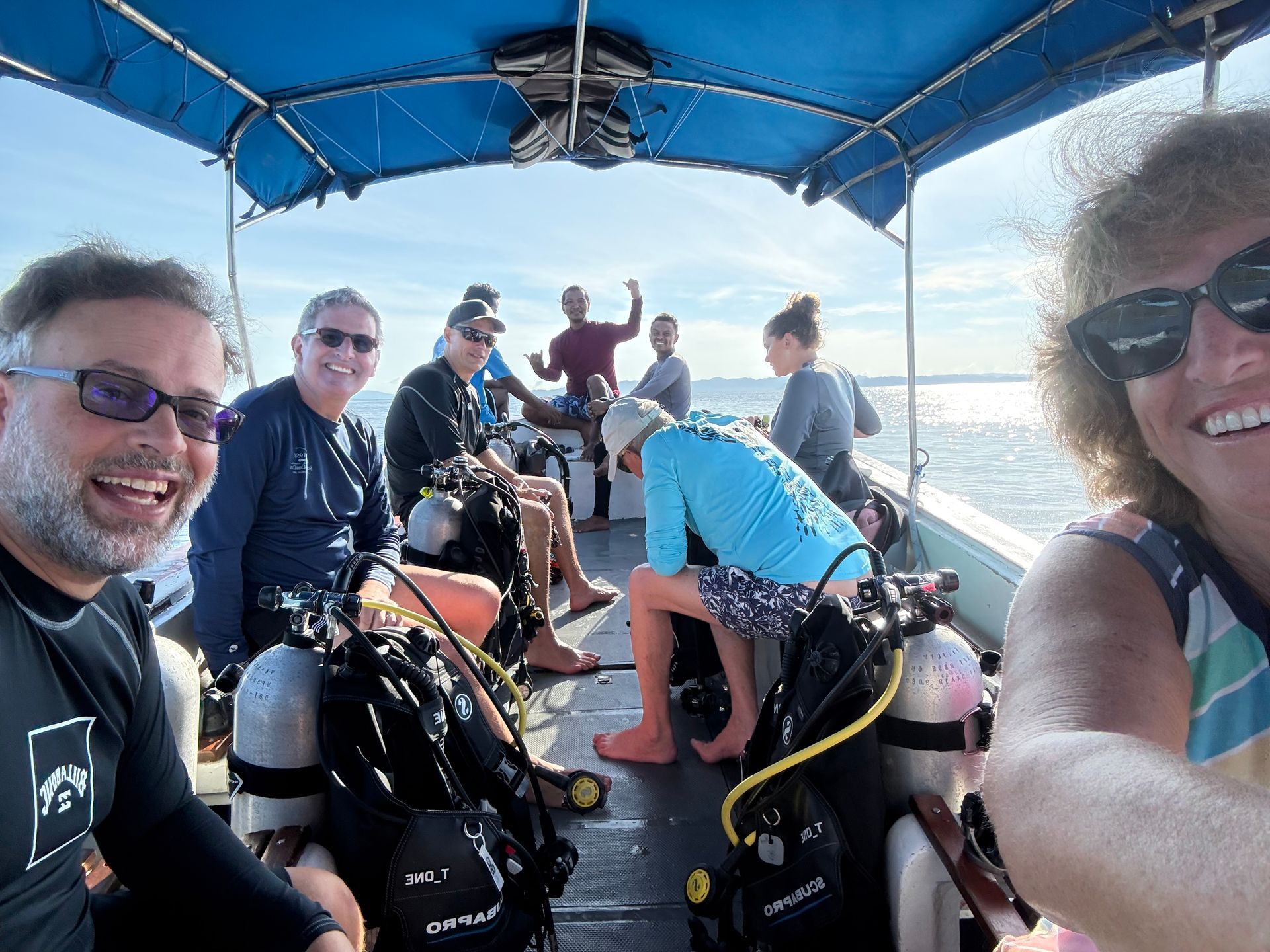 One of my favorite ways to get to know people is by playing a game where everyone writes down something about themselves that they don't think anybody at the table knows about them, not even spouses, if possible. Then I collect and read each one and we vote who we think each is, before we reveal! The 8 of us from Ship (Bob & Sue, Eddie & Angel, Ben, Lyn, Bosco and myself) and David and Jim (who we met at the Resort) played. It was great fun - turns out we had one who went to 10 different grade schools, a minister, an actor, a paintball zealot, a lotion and potions traveler, one was on the Bozo show, one gave a serial murderer his business card, one drove a taxi, was a landscaper & rainbow vacuum salesperson, one went to a sweat lodge & one stumbled upon the Olympic torch run.