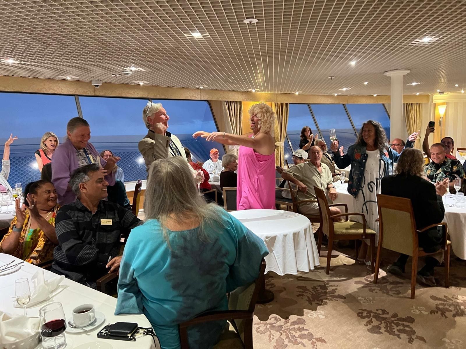 Jim Maas one of our favorite, sweetest, super great guy residents through his own Birthday Bash Dinner and Dance Party. About 80 of attended in our fancy dining room. The chef provided a nice steak dinner and Jim had Champagne flowing ! Fellow resident Paul Fishman approached me earlier in the day to help him execute a surprise for Jim. He wanted to borrow some stuff from me to give Jim a Marilyn Monroe type moment! I solicited a few other ladies to help me and we pulled together the dress, wig, sparkly sandals and my special touch, custom undies for Paul to flash Jim! Paul & I slipped out between dinner and cake and got him all dolled up. Jim had no idea! Paul later returned to dining room in his regular clothes and present Jim with the undies! Don't think I will see them be returned - just happy i got another use out of them after New Years Eve. I love putting my craft skills to use!