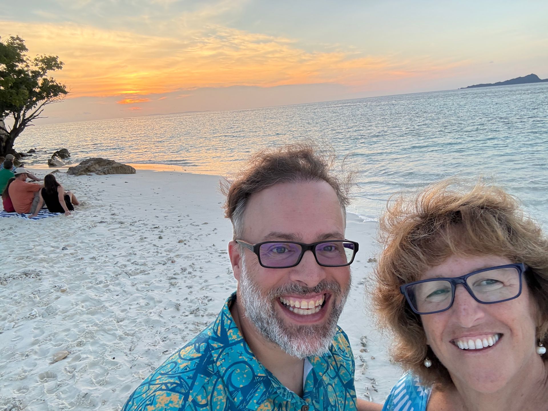 We were in a taxi van headed to St Anne's area from the port and our driver wanted to pick up more people to fill the van. The 2 we added were Robert and Fred from our ship, who were going to a hotel to use a day pass they offered - 60 Euro for use of beach pool and facilities and it included hot & cold buffet lunch with cocktails. Hotel was lovely when we pulled up and secluded beach & pool lovely - so we changed plans and joined in. Robert, who is a wealth investor in our Ship, ended up paying for all 6 of us and we had a very nice day just relaxing. Rod, Fred & Robert bonded over cars and music discussions. Us ladies just chilled! A good day!