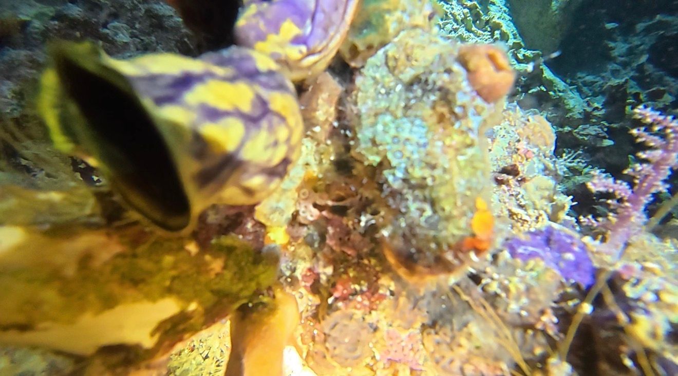 I was so excited to do my first night dive at Eco Cove Resort . It was a gorgeous night and we went into the water off the Resort jetty around 7pm. Each diver has a flash light / torch. It is a whole new experience in the water after dark, tons of activity from things that are generally hidden or sleeping during the day. I had no idea that lobsters dart / swim quickly thru the water, like an octopus - I thought they only crawled like a crab! We saw a two foot lobster, fly by right away. Lion fish were plentiful, floating in from all directions!