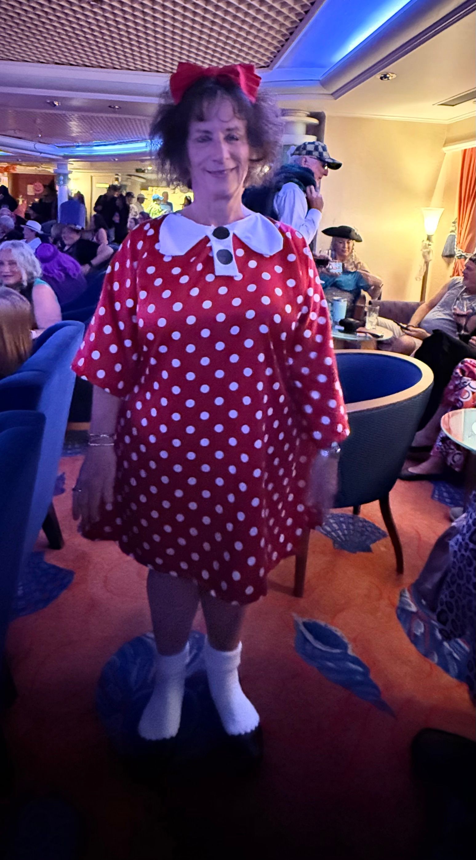 There was a custume parade at 10pm before our 5 judges, who deliberations to get to the finalist - Bosco and I made it to the final 6! Then crowd applause determined the grand prize winner! Resident Barbara, from The Villages in Florida was victorious and deservingly so for her creativity!