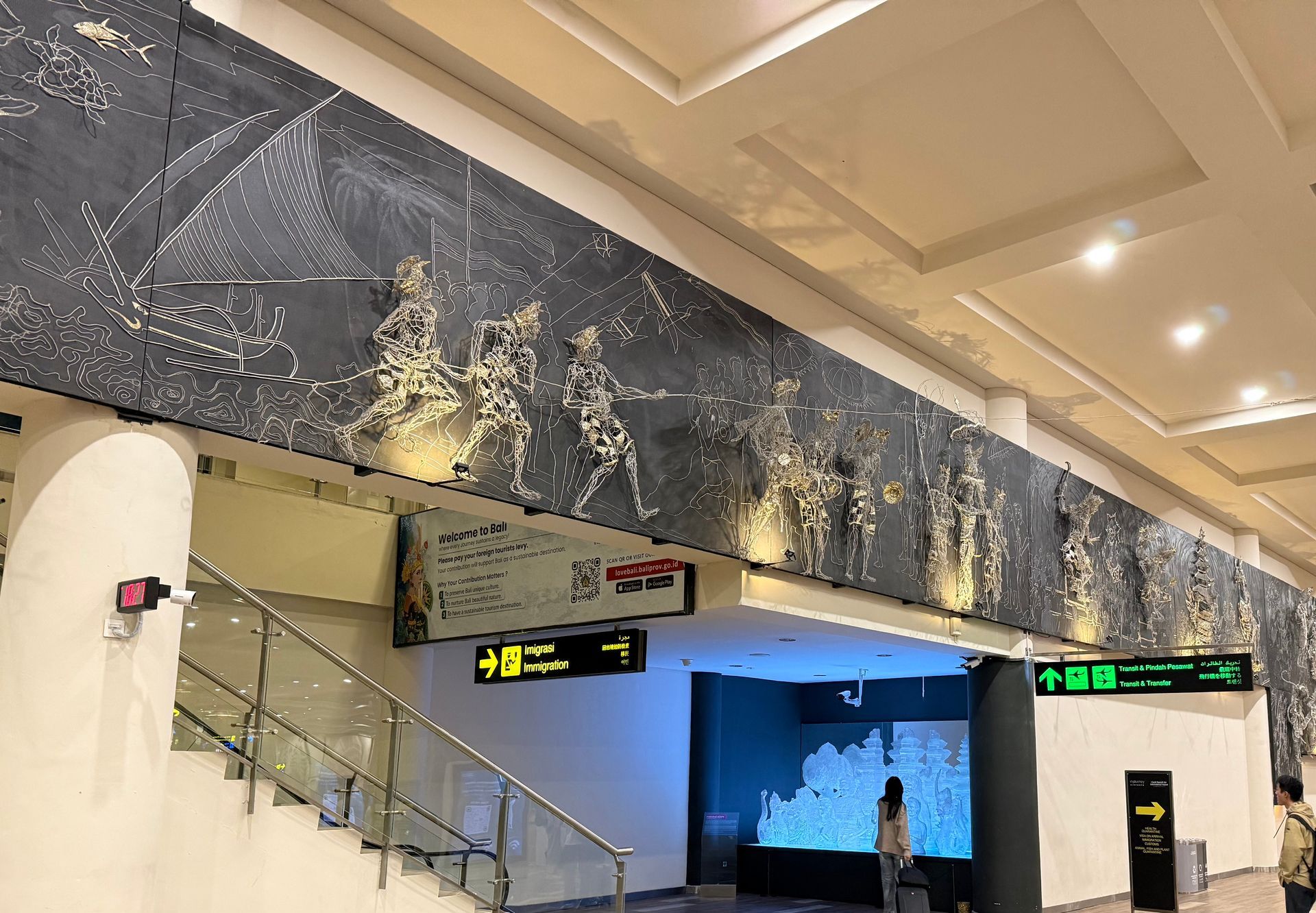 In Denpasar, Bali I was dazzled by the architectural details and art all over the open air style airport.