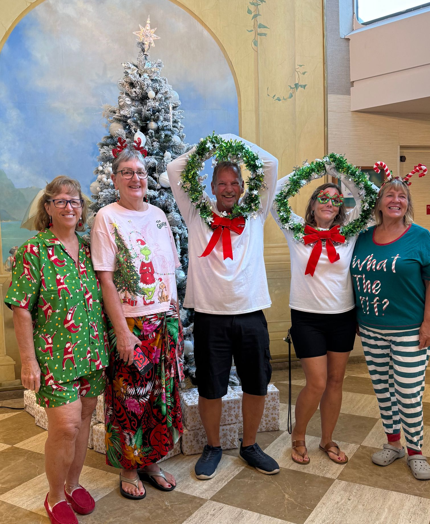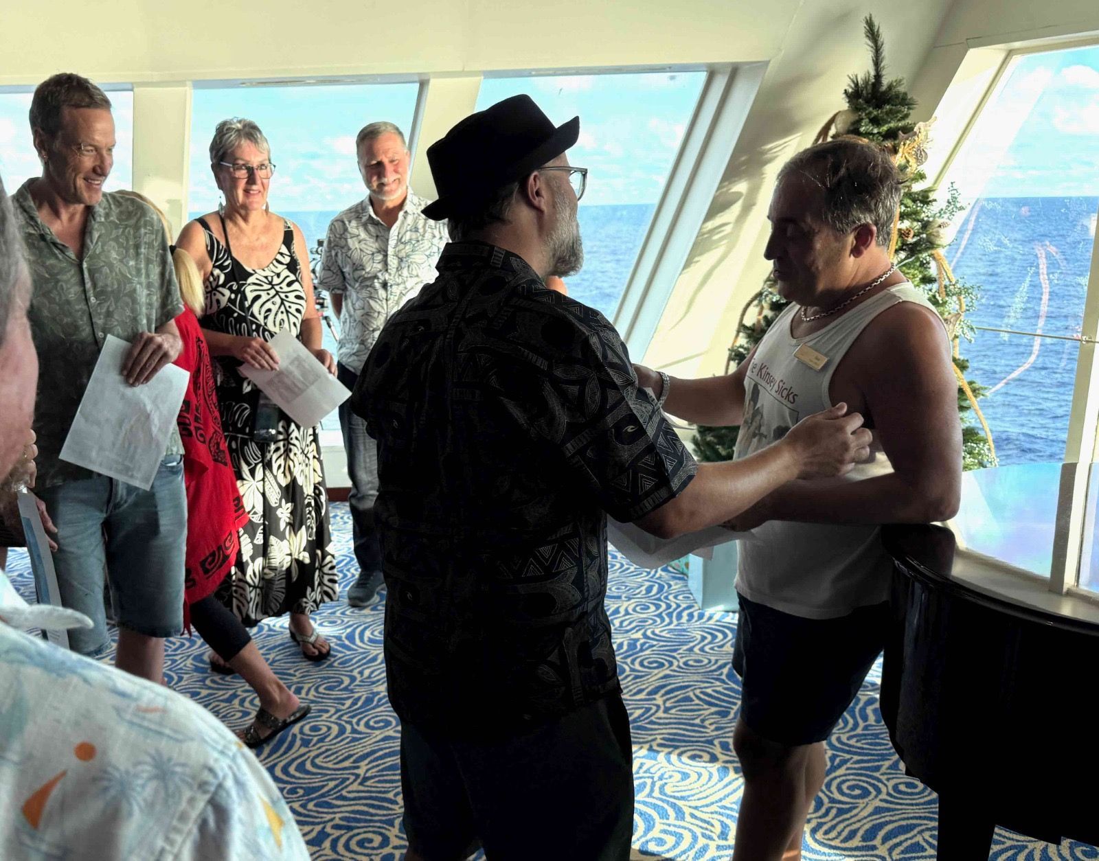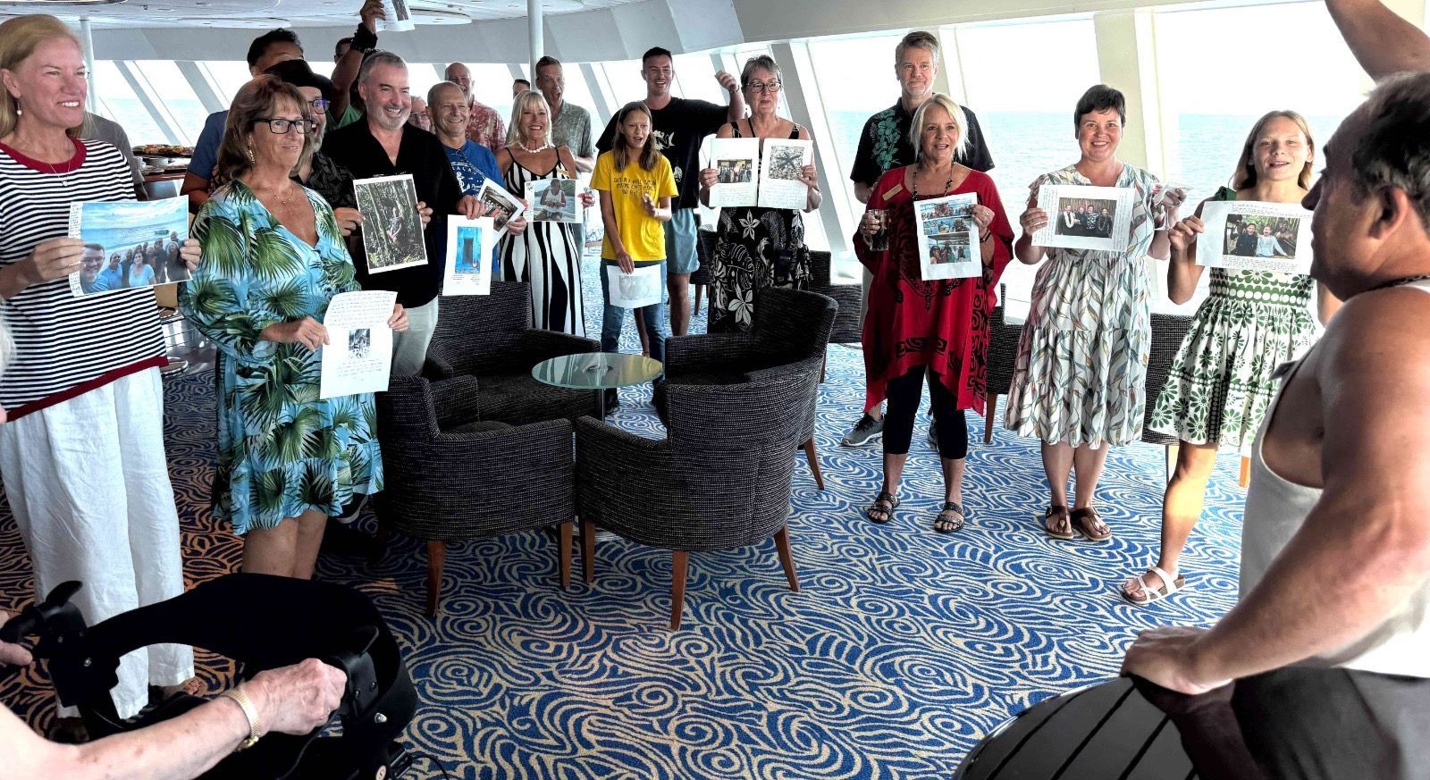 Another night, 30 of us surprised a good friend with a night of recognition for all his time, efforts and talent in organizing excursions for us! Ben, a retired Harvard lawyer whose career was notable as an AIDS activist and then later as an outspoken drag queen, is one of my favorites on board. Of course, he grew up in the suburbs of Philadelphia! We each printed a photo of ourself with Ben, on an outing and wrote him a note about why we appreciate him so much. His 99 year old mom was there and it was so touching and deserved!