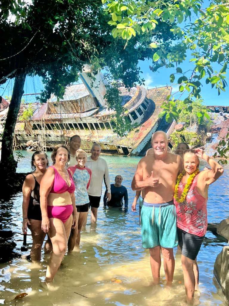 After spending the morning at Simon's we headed to Roderick's Bay which we thought was just another snorkel spot and were delighted to find out there was a German expedition cruise ship the MS WORLD DISCOVERER wrecked there since April 30, 2000. They struck an uncharted reef and the captain was able ground the ship to prevent it from sinking on the edge of this small village and get all 79 passengers and crew off safely. It was declared a total loss and abandoned in Roderick Bay. Soooo Cool !! We had a great afternoon snorkeling here and they had another lunch feast waiting for us when we arrived!