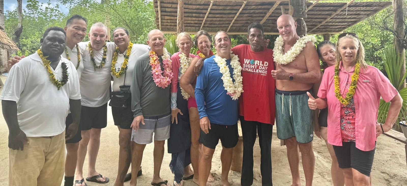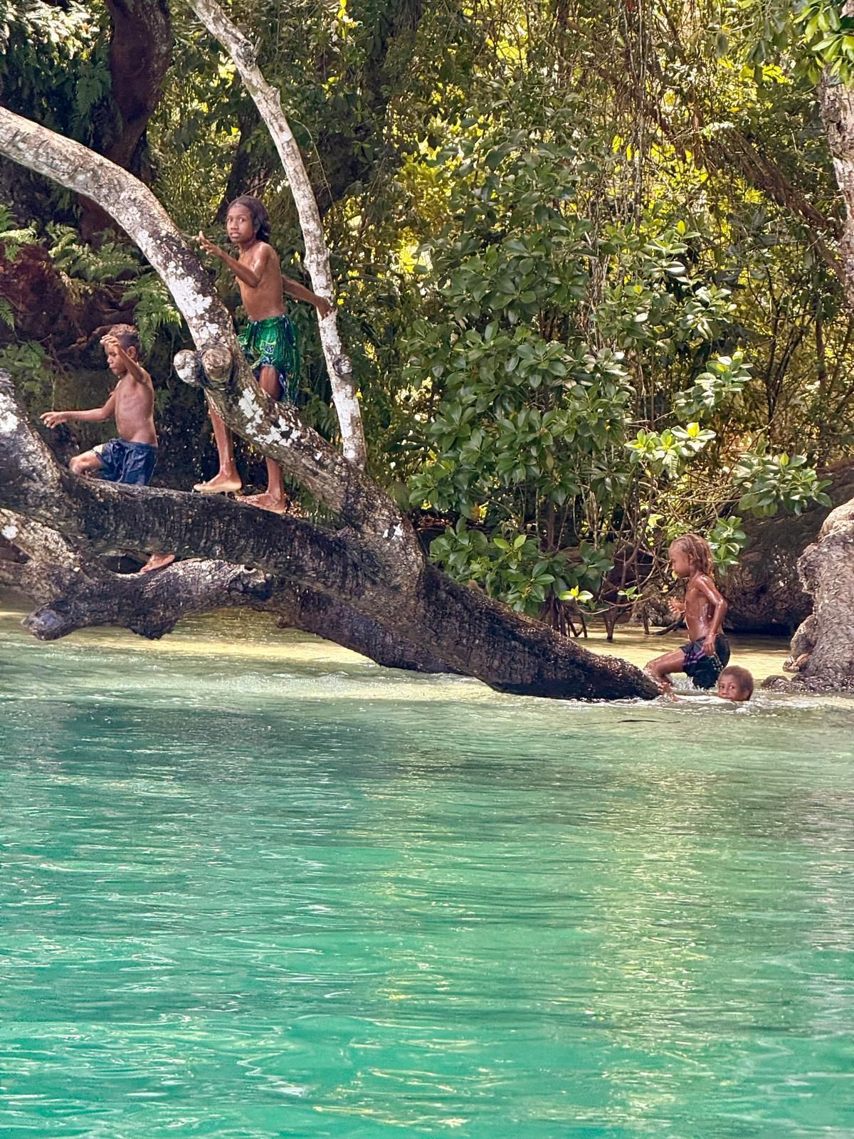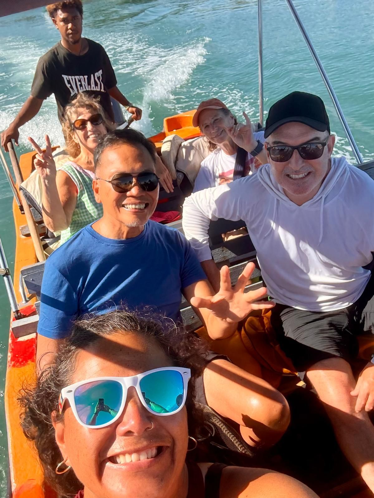Lyn, Alex & Chaz, Lori & I were in one boat and Phil & Kim, Sue & Ed and Ben were in the other.Simon's village and reserve was great. They greeted us with hand made super fragrant lei's and provided a huge "snack" tray to each of us ( was bigger than most lunches) and had all their local favorites! My lei was honey suckle, a personal favorite, lovely!! The kids were so friendly and sweet and the snorkeling here was stunning! Video doesn't do it justice! This is not a typical tourist spot and Simon's preservation work for the last 20+ years really shows. Google Simon's Nature Reserve Baroni, Solomon Islands.