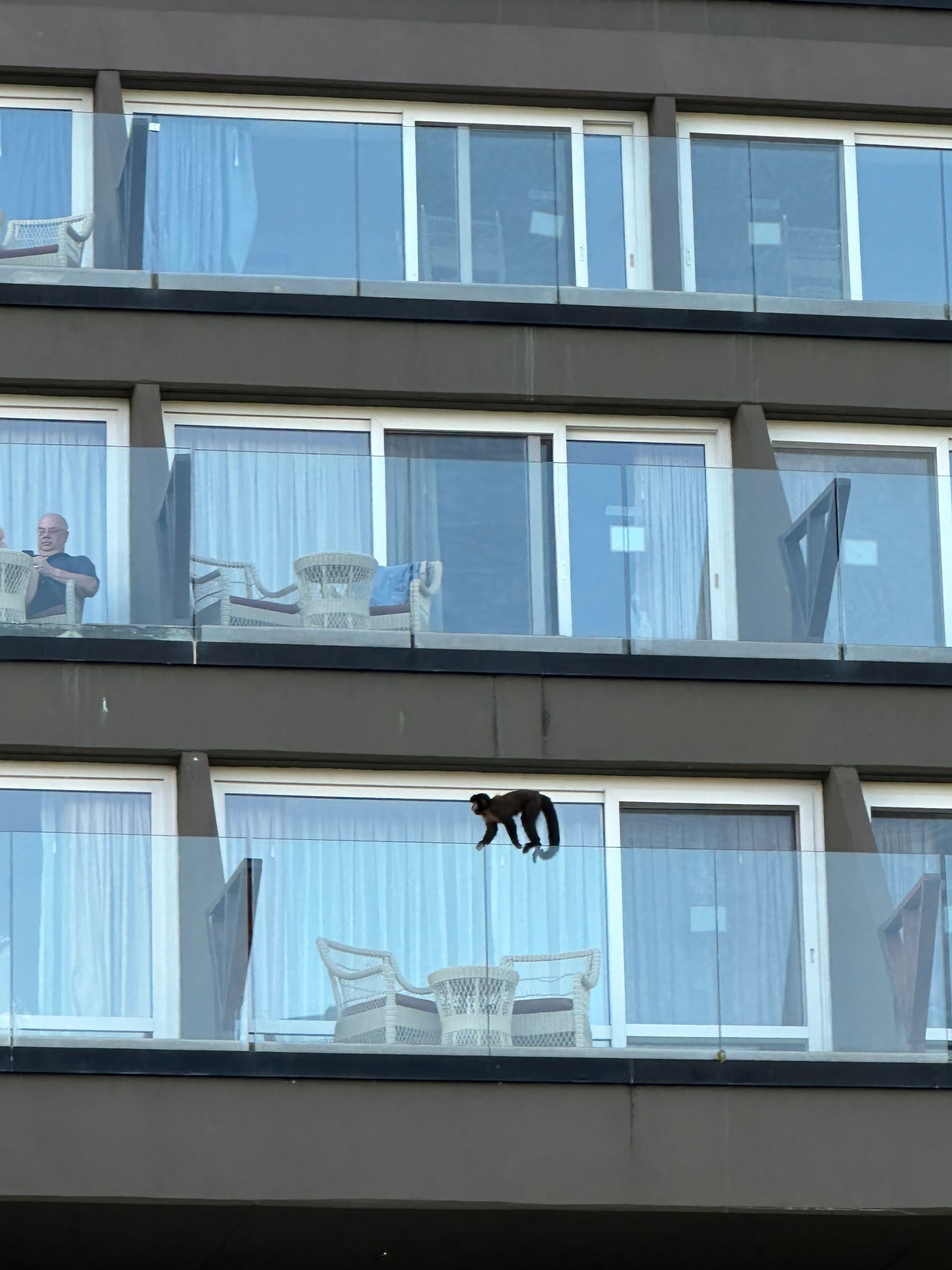 The Hotel Property is stunning! There is only one Hotel in each side of the Falls National Parks. At checkin the Hotel told us to be sure to lock our balcony door to keep the monkeys out, that they were smart and knew how to open the doors when not locked. The monkeys were waiting for us, right outside our balcony door when we got to the room! They were so playful and not shy at all! We were exhausted but couldn't wait to hit the pool!