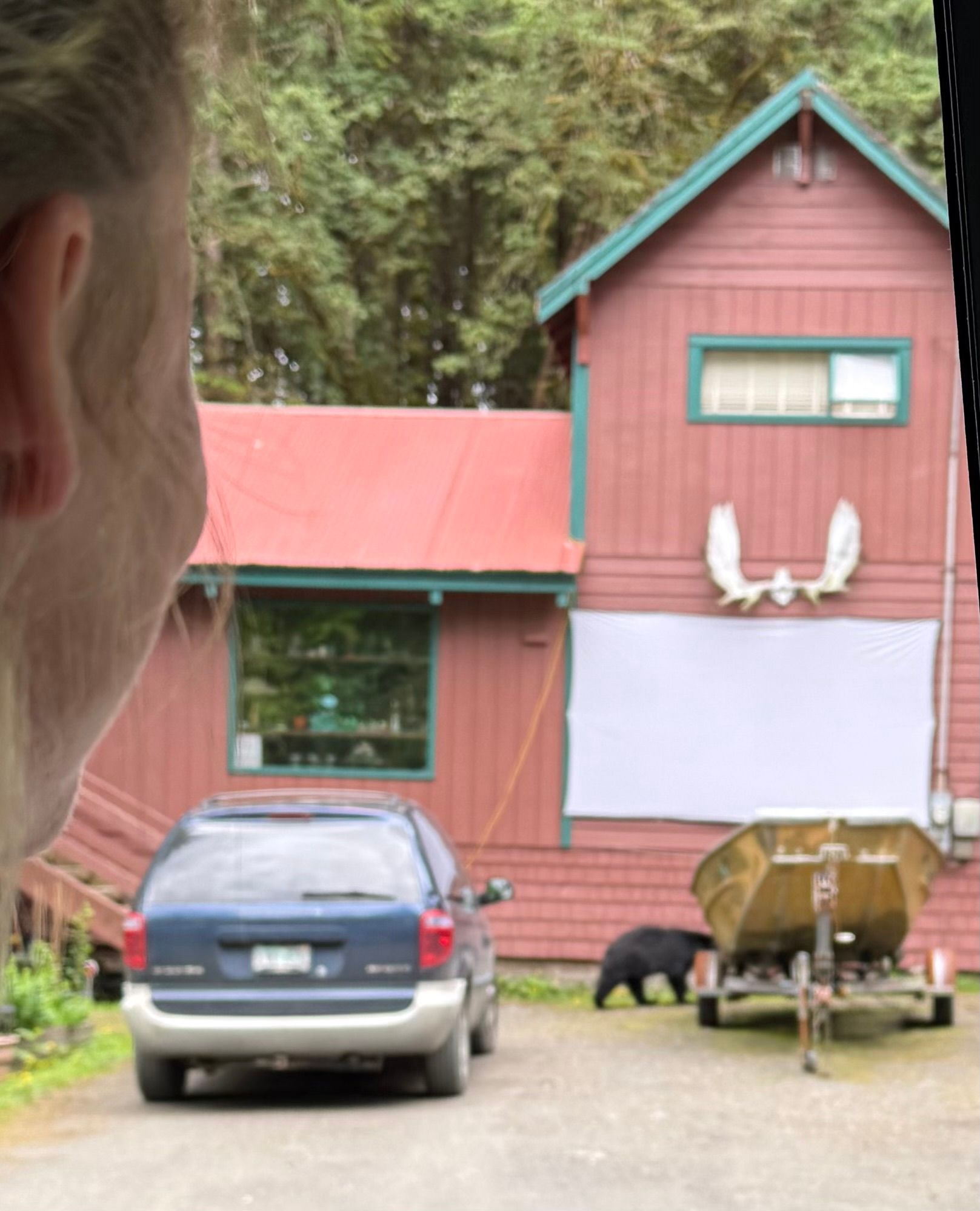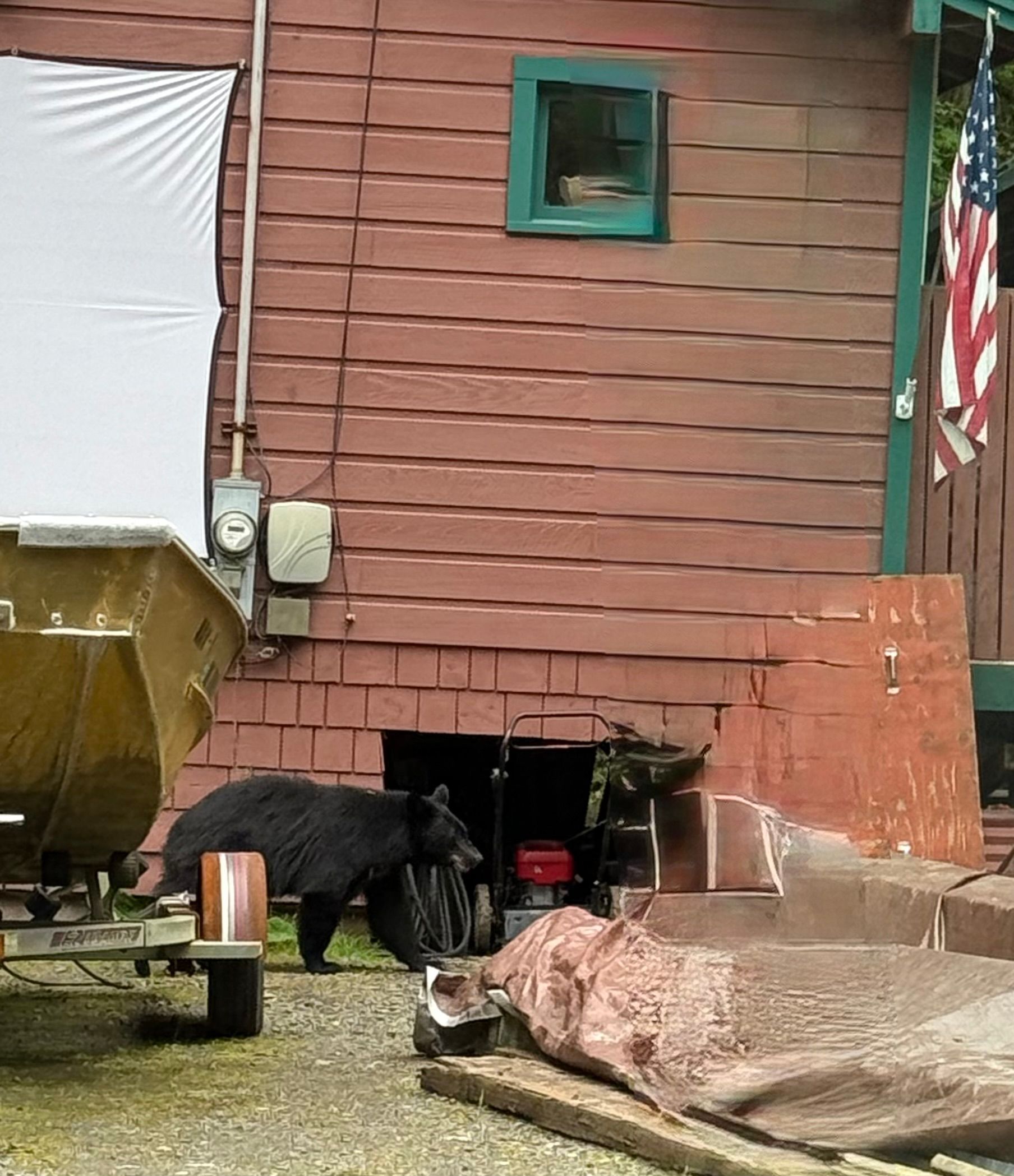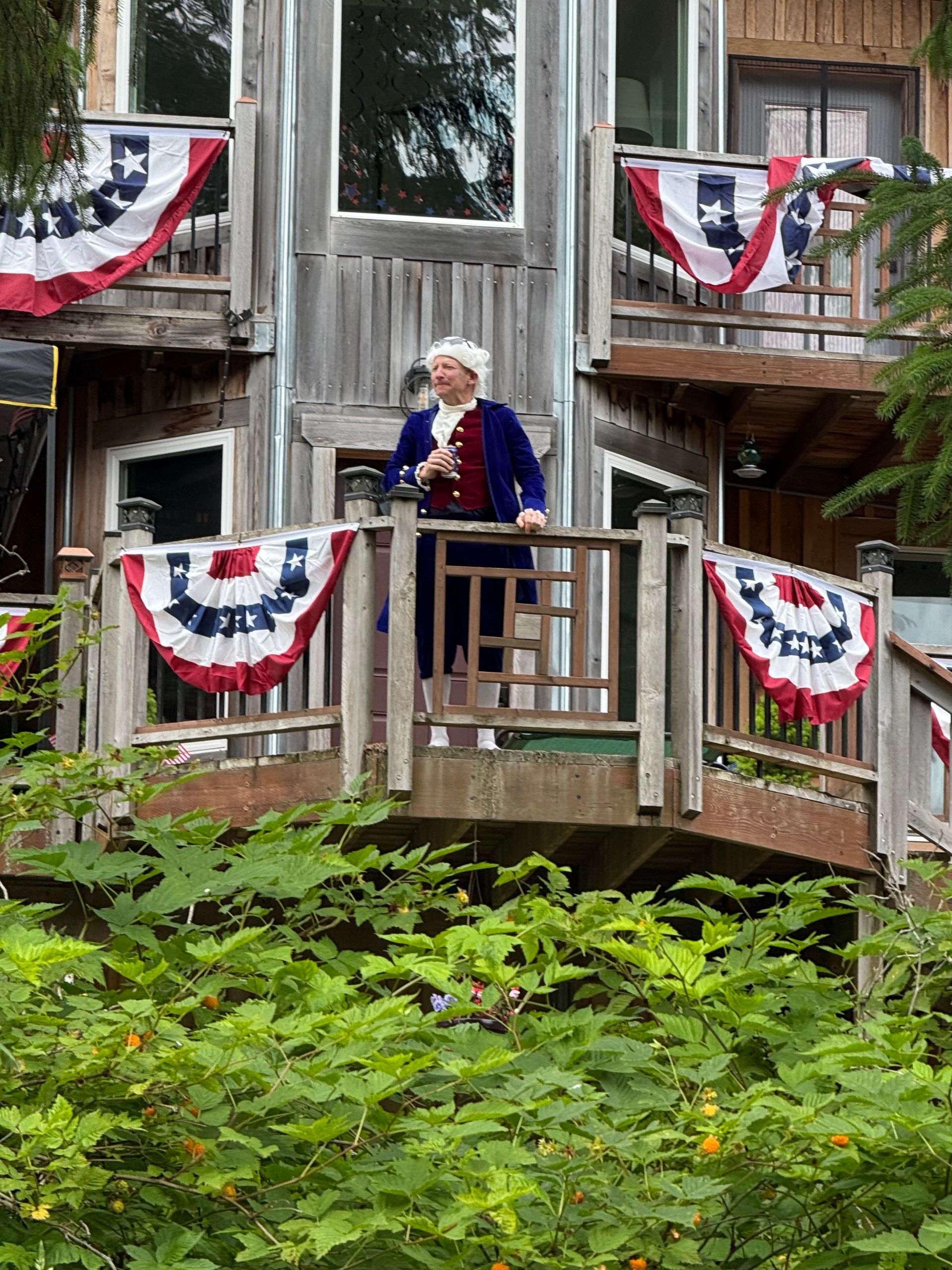 After the parade we were off to our 2pm excursion, looking for bears and other wildlife. We saw this young bear scratching his butt on a front post in a neighborhood home, more eagles, salmon, another founding father and lots of totem poles.