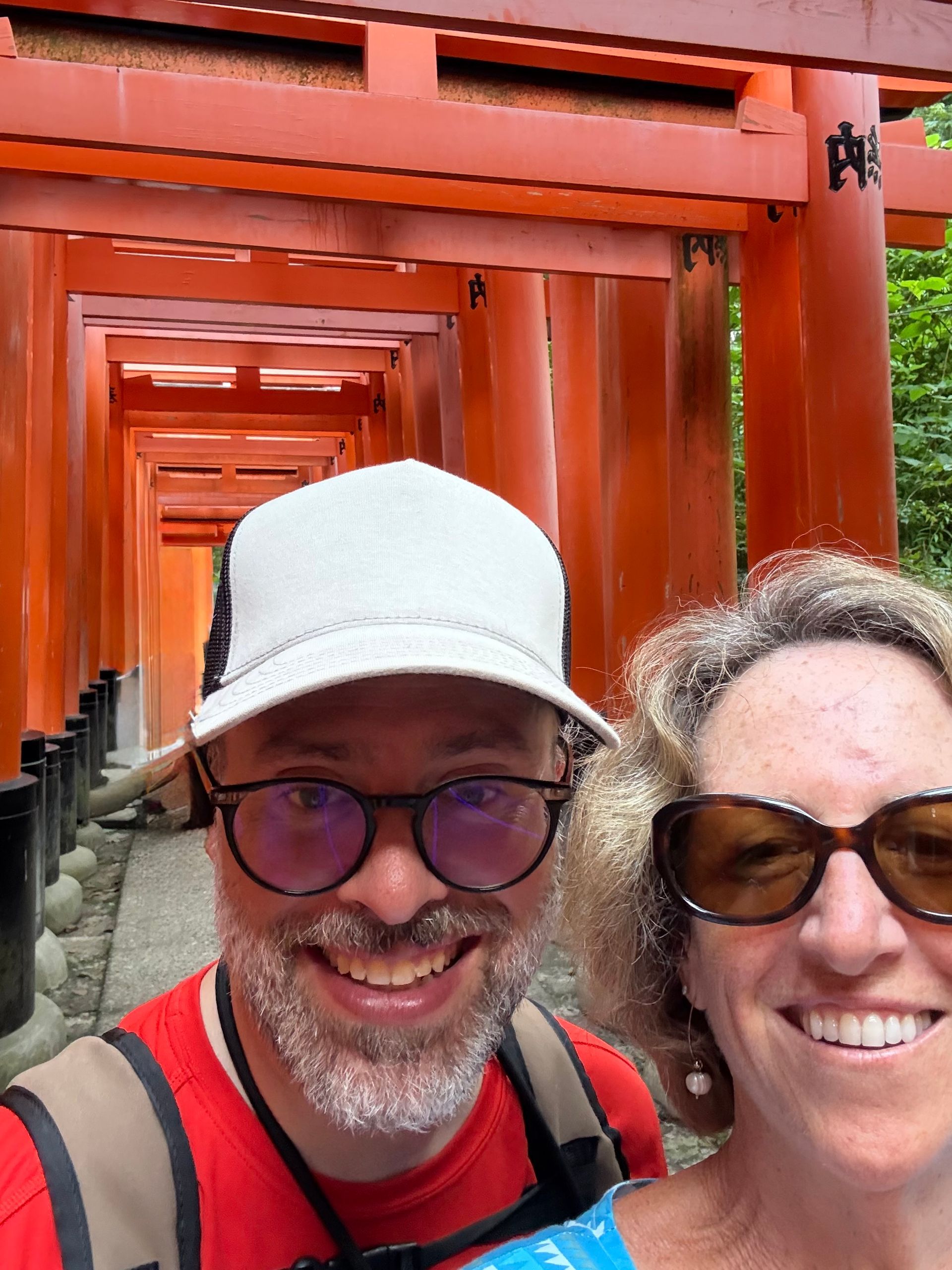 Our final stop was the show stopper for me. The Fushimi Inari - Taisha Shrine is one of Kyoto's most iconic Shinto shrines, dedicated to Inari, the deity of rice, prosperity and business.Founded in 711 A.D. it is famous for its thousands of vibrant red torii gates that form tunnels along the trails leading up Mt. Inari. These gates, donated by individuals and businesses, symbolize gratitude and prayers for success. The shrine is anchored by Fox statues, believed to be Inari's messengers.