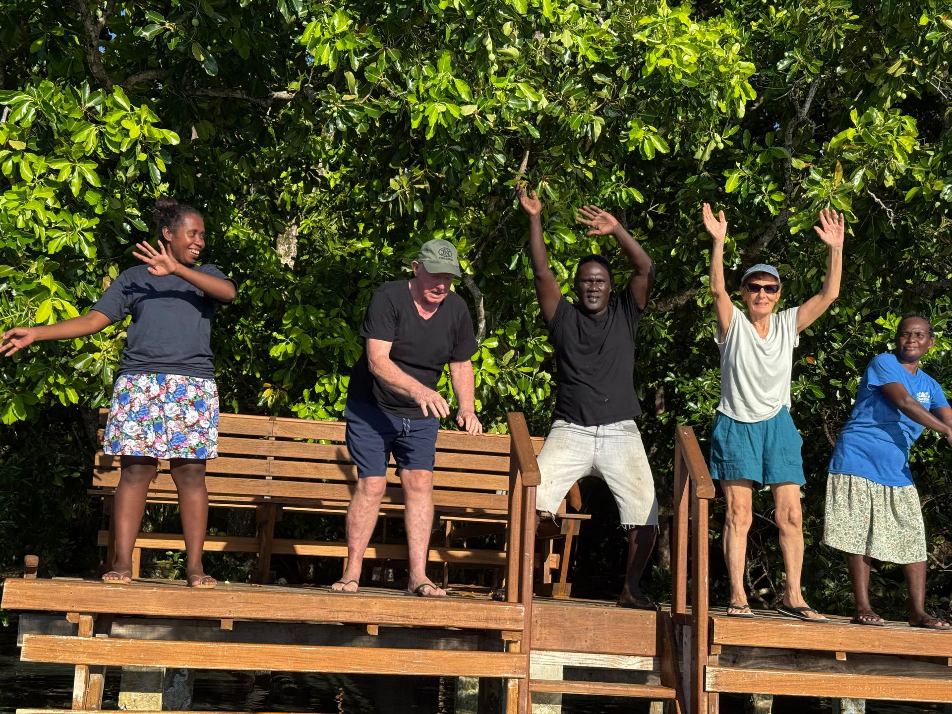 Saying good bye is bitter sweet! We all had a great time and Uepi will always be special time for us all. (L to R) Bosco, Ed & Sue, Memo, Me & Jason ( son of Founder's, who grew up here and also runs business) and Ben ( who found & organized this trip for us all!)