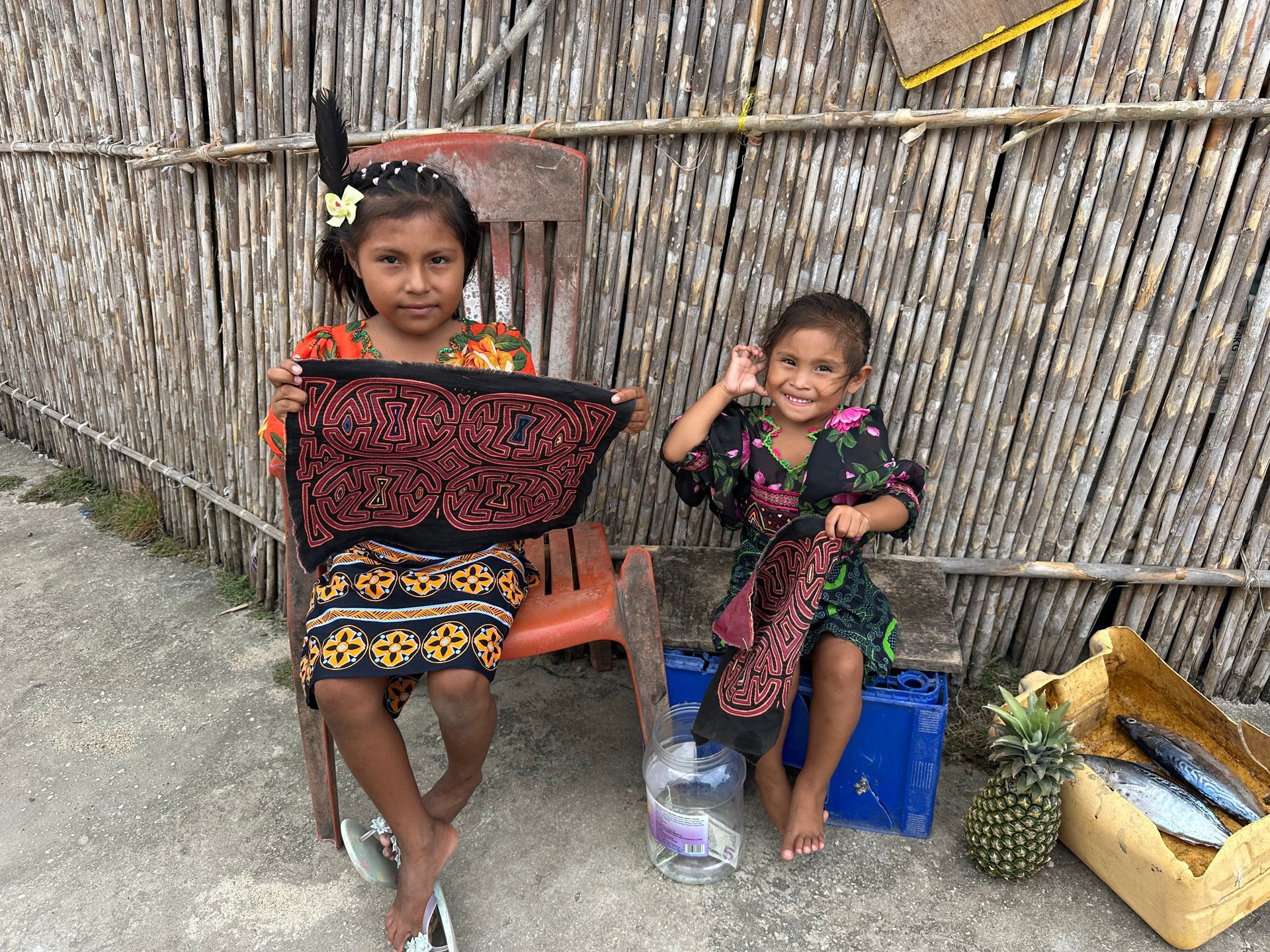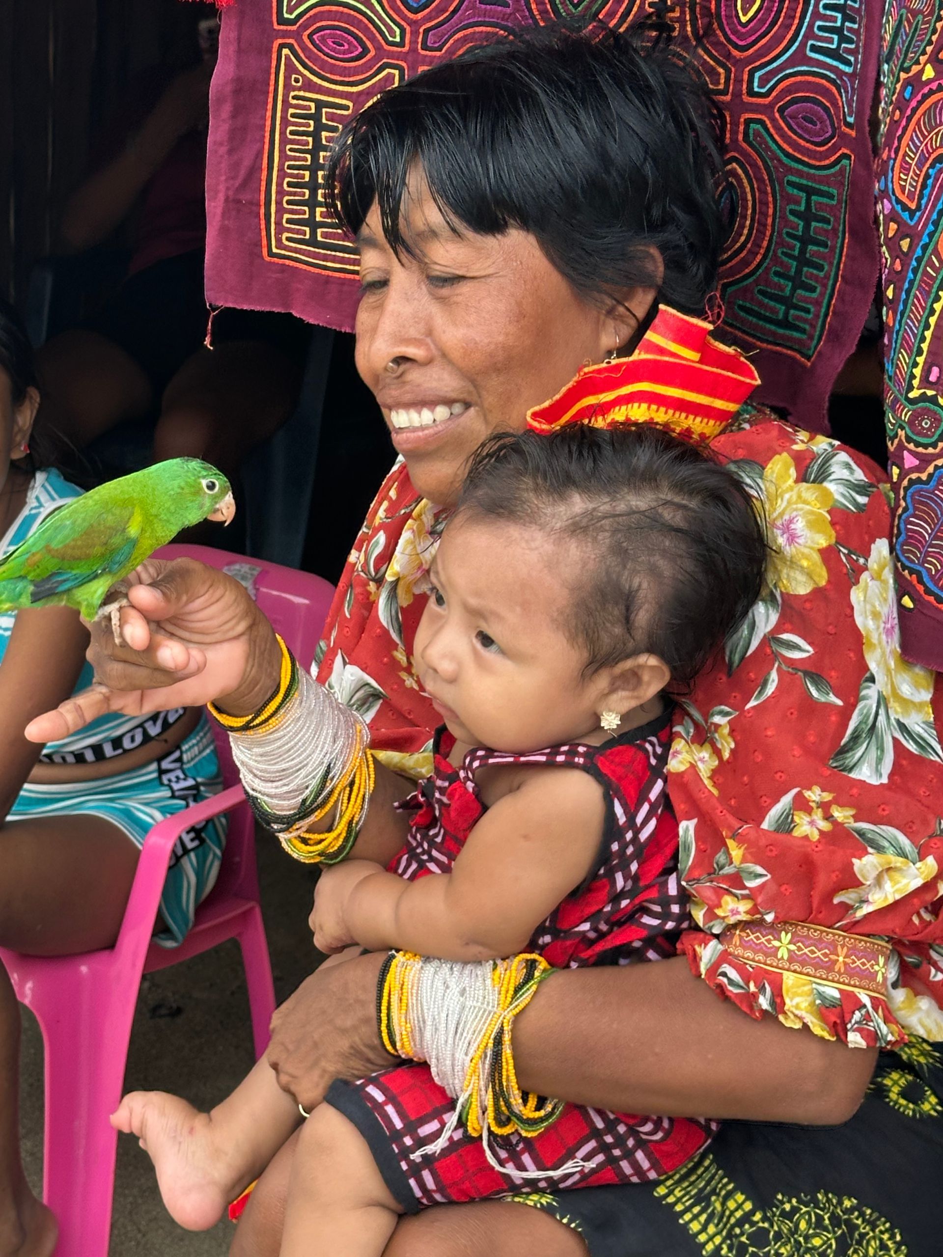 Isla Perro ( Dog Island) because the snorkeling was suppose to be amazing. However the water swells in the islands were too much for us to safely leave the area closest to where the ship was anchored. The Captain and crew struggled to even get the tenders safely in the water for us, but they prevailed and we were able to go ashore, to one of the larger islands, for a few hours but they didn't want us to stray any further, in case we needed to pull up anchor quickly. I did enjoy meeting and seeing the Kuna people at their homes. The women are so tiny and the children so cute, sweet and curious.