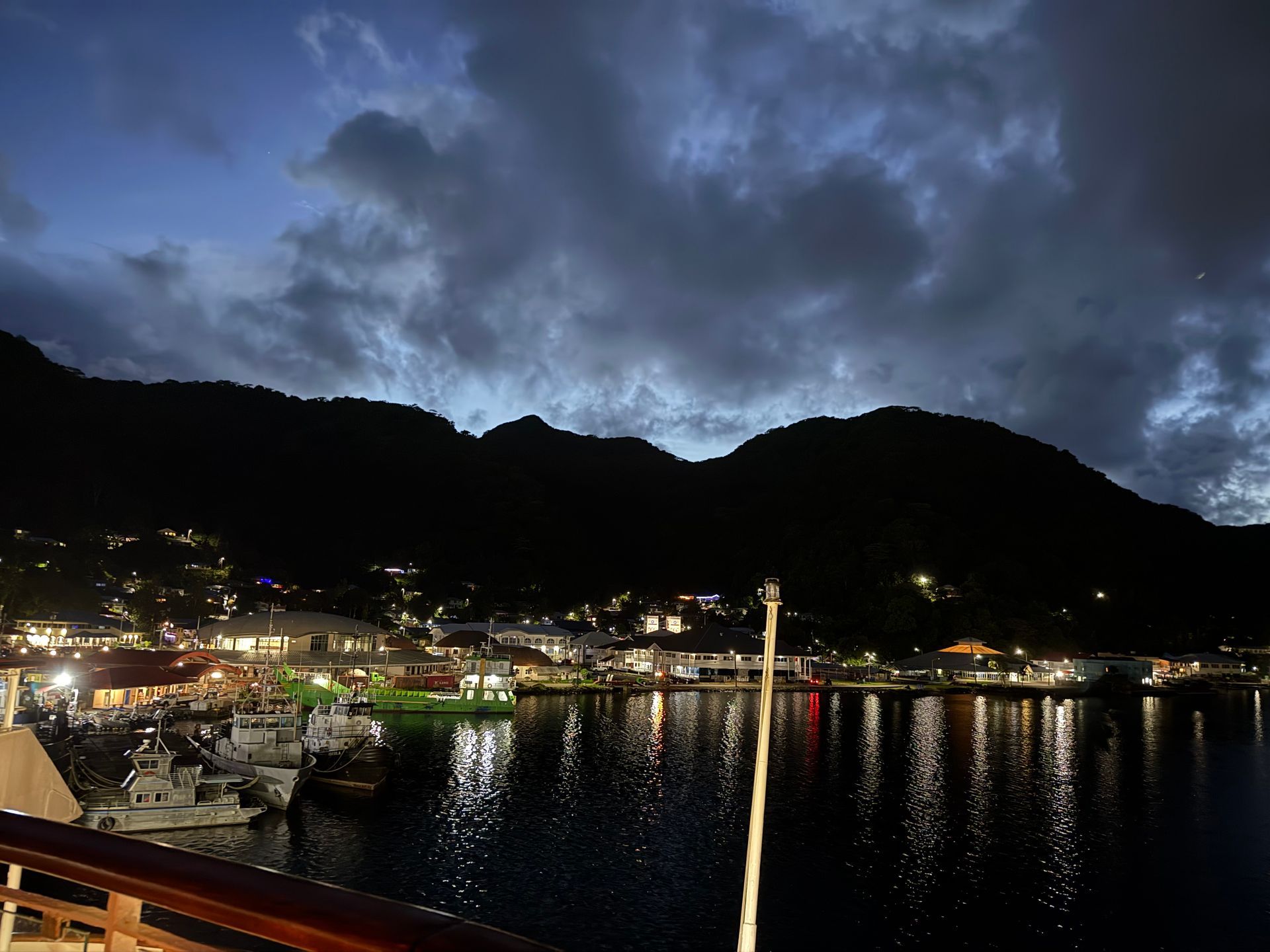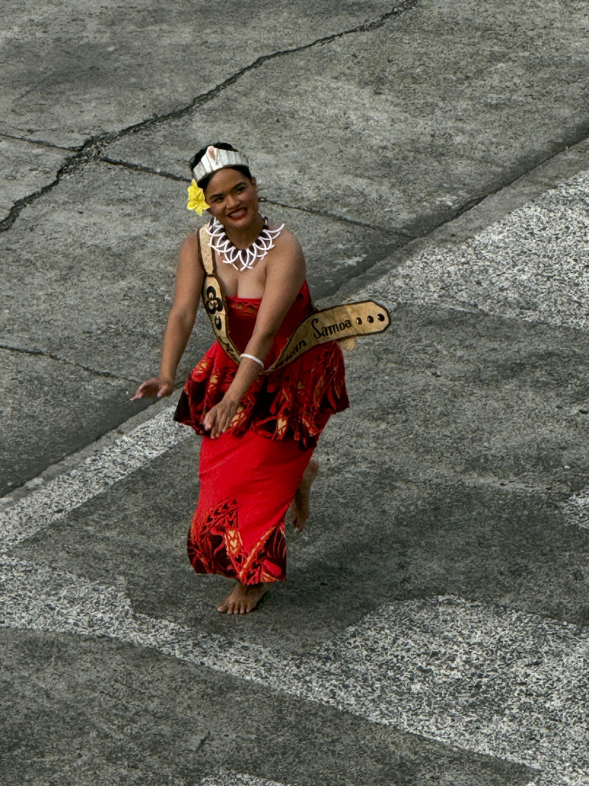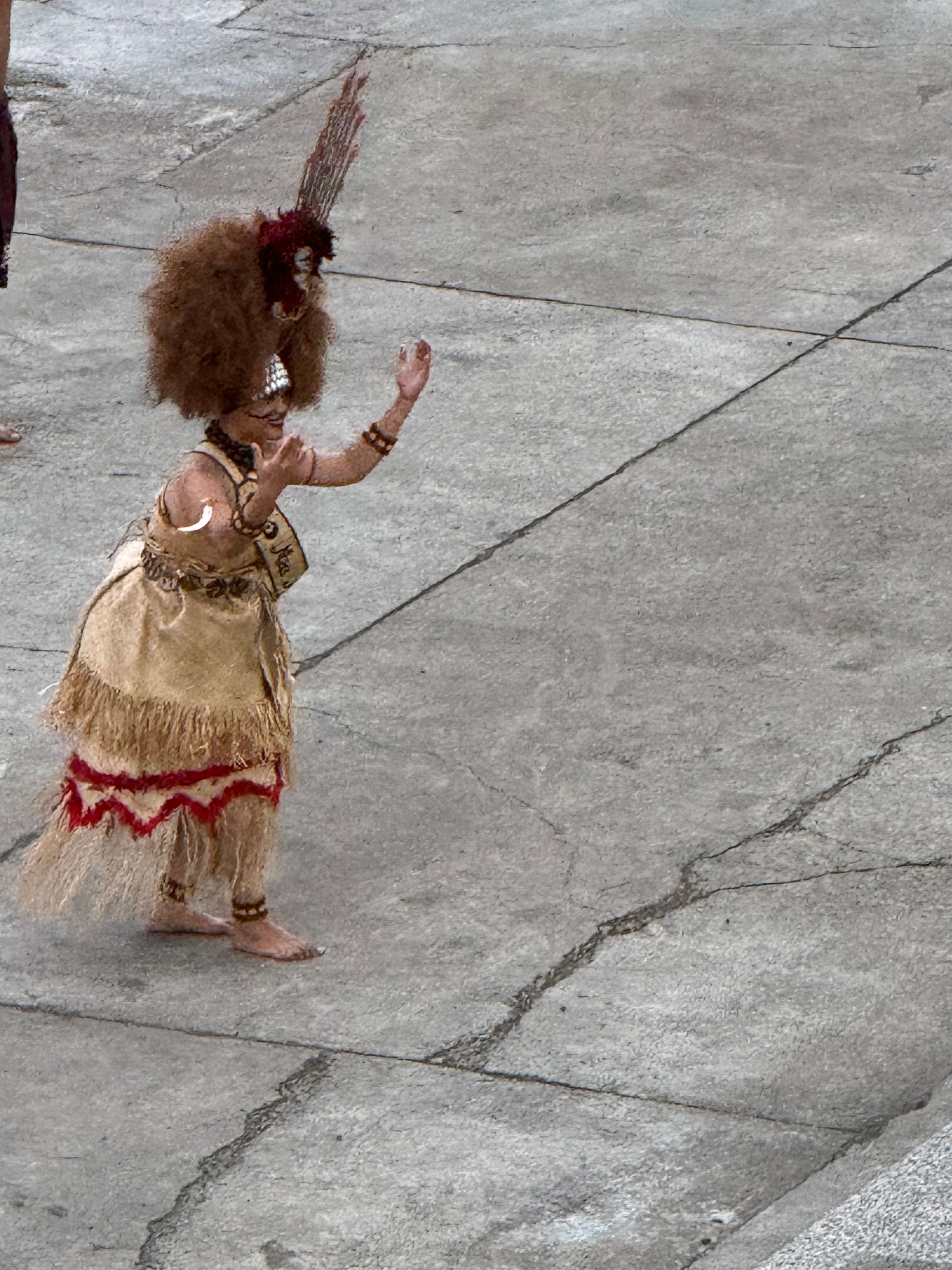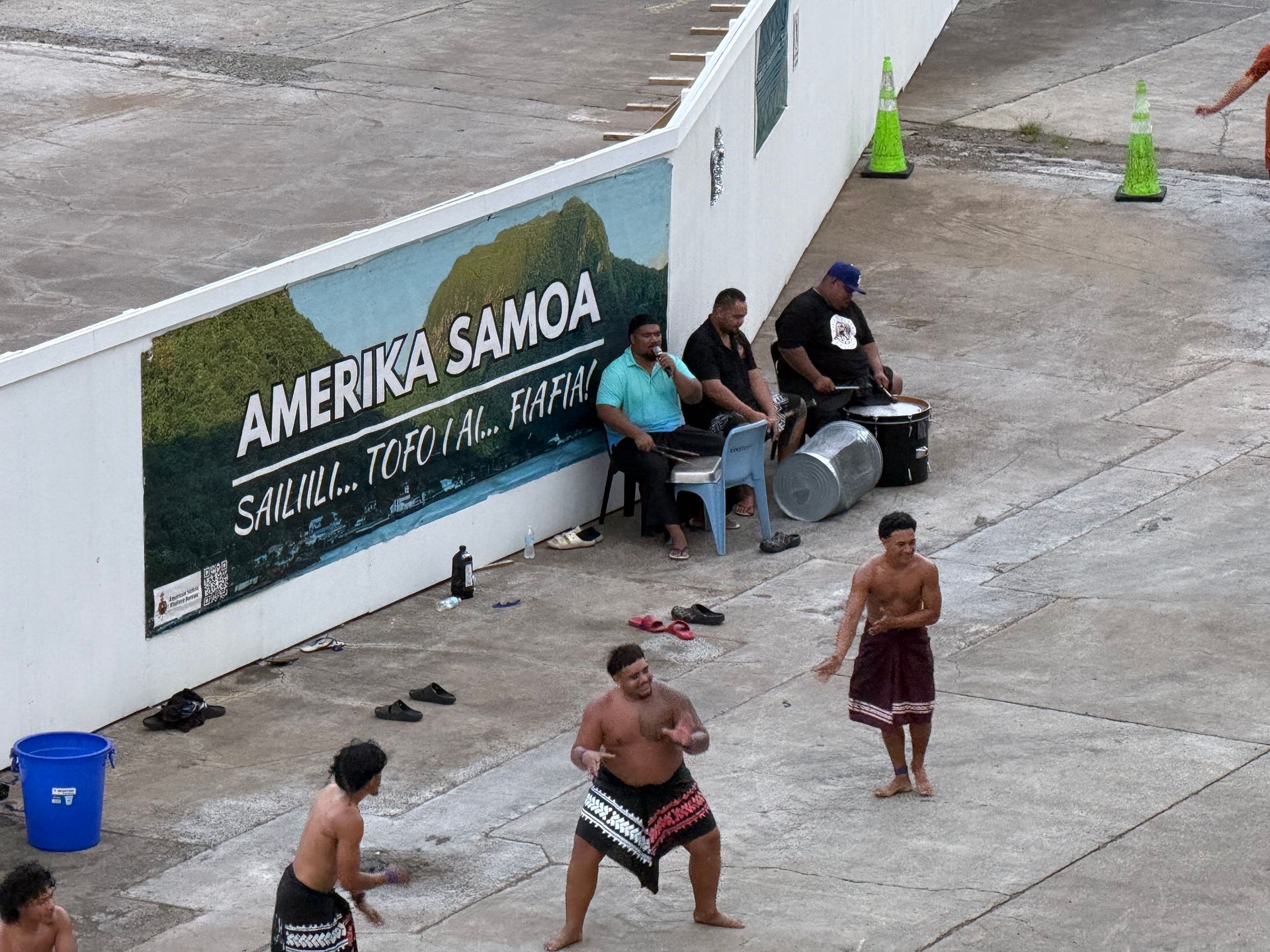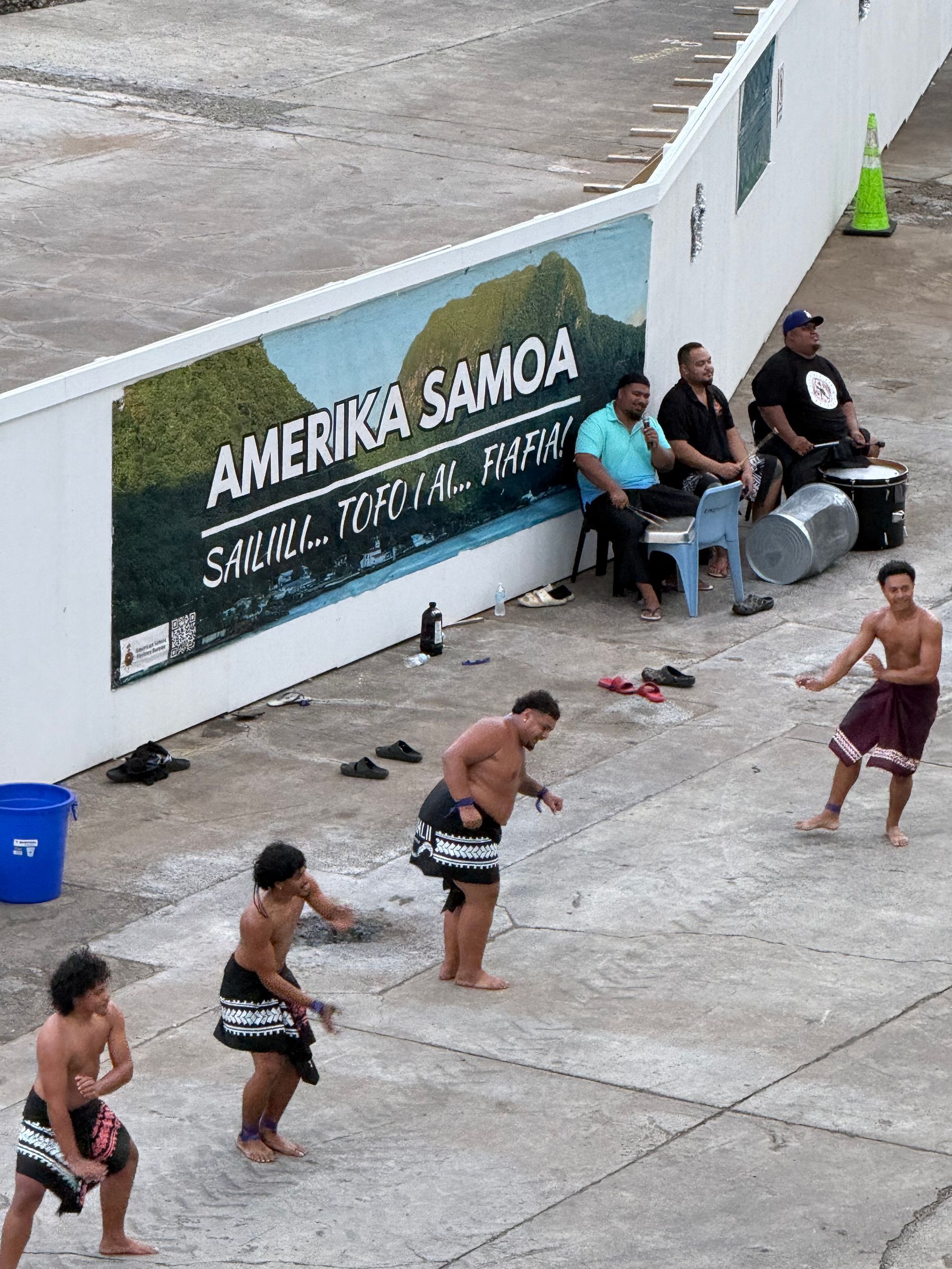 The above is a photo of a friend of a friend as we came into the harbor of Pago Pago, American Samoa this morning. We were greeted by dancers and Miss American Samoa. Additional fire dancers and the local chief came by for another performance at dinner time! Such friendly greetings and nice people. These are also some of the largest people I have ever seen. Many of them came on board and breakfast looked like a linebacker convention. I have never seen so many egg orders stacked up!
