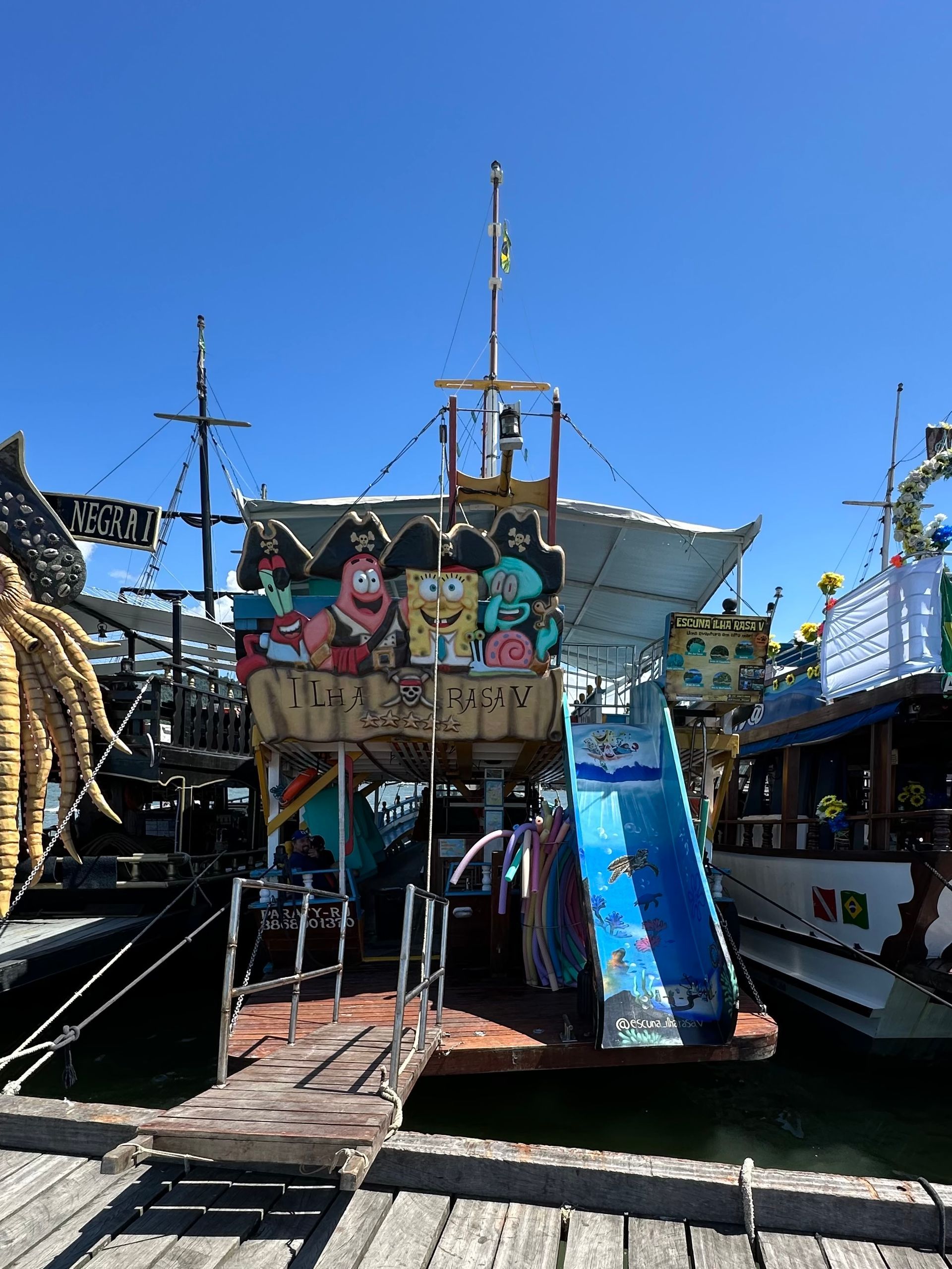 Party is a small town backed by the mountains on Brazil's Costa Verde, between Rio and Sao Paula. Its colonial center is cobbled streets and 17th & 18th century buildings dating back to the Brazilian Gold Rush. The whitewashed church was built in 1722. The port was full of party boats that cater to the many tourist and dot the coastline. There are 65 islands and hundreds of beaches. The town was decorated for the first weekend of Carnival and many of our residents stayed in town overnight to part take in the festivities. Which kicked off today.