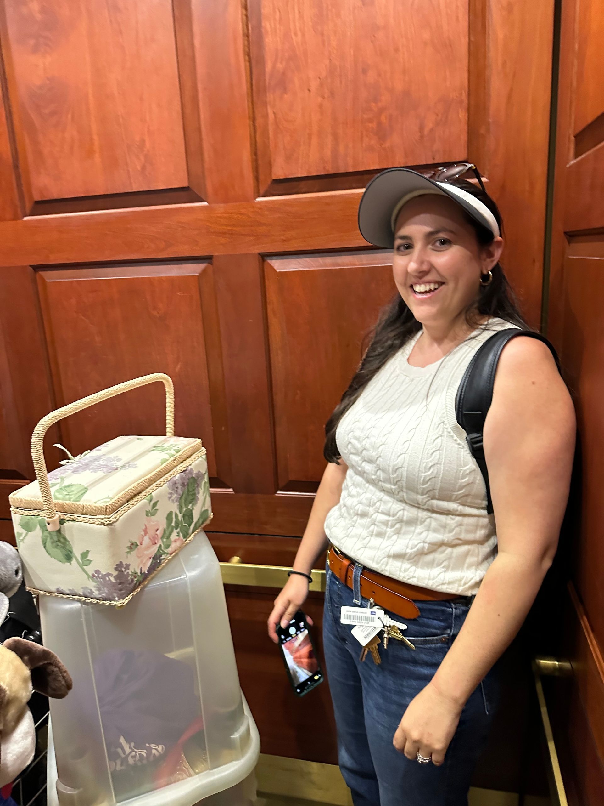 Normally I would call Philadelphia Home but after 9 months of living on the Ship, I am beginning to call the Ship HOME! To that point, the main reasons I flew across the country this week was to come home and get my Condo in Philly ready to sell! I needed to clear out my remaining personal effects, so that I could possibly turn the place over to a realtor to liquidate and /or sell my remaining furniture and household items, along with the condo itself. I met with a few realtors and spent a good amount of time cleaning out all my closets, cabinets and drawers. I tried to get as much as possible into the willing arms of family members and friends. I was happy for them to take any items they could put to good use! My nieces Colleen and Laura were my 2 best recipients pictured below in the elevator as we hauled out numerous loads to their uber ( for Colleen) and car ( for Laura). I even got my bestie Laureen to take a bag home with her!