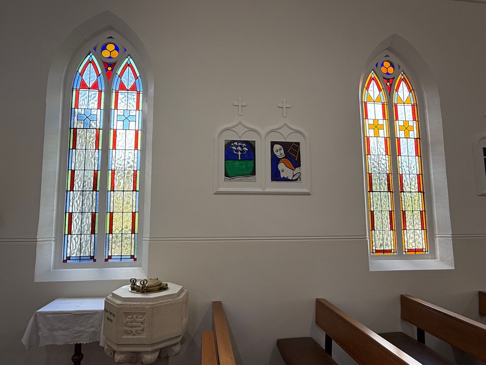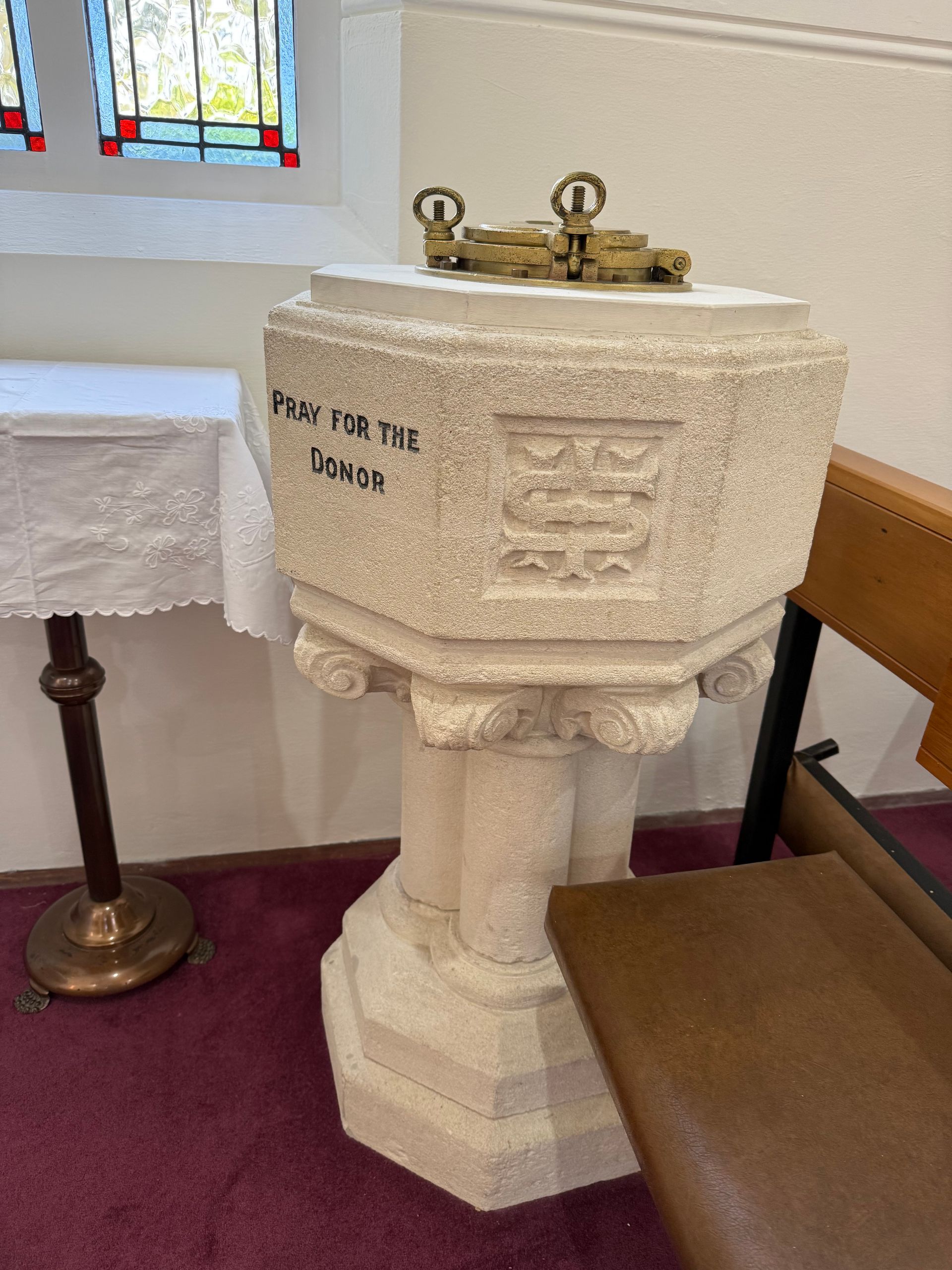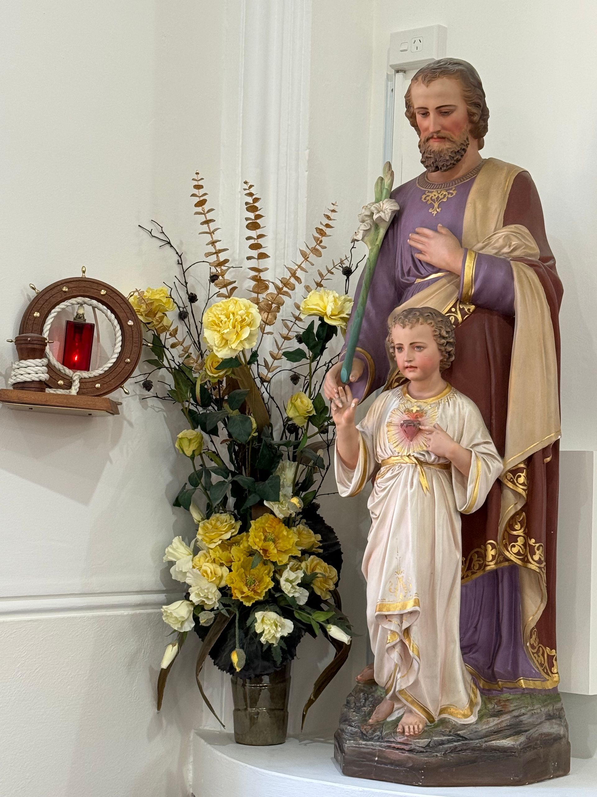 We cleared customs by 4:30 pm and a small group of us, made our way off the ship and into a taxi to make the one and only Catholic mass in town at 5 pm, Saturday night, at St. Mary Star of the Sea. The parish only has 25 to 30 members and the priest travels in once a week from over 40 minutes away. The church has just been freshly renovated, we could still smell fresh paint. The interior decor is all taken from a shipwreck that happened in the harbor of the S.S. Tyrone ( previously named Drayton Grange) in 1913. The altar uses the propeller, the baptismal fount, a port hole and I loved the copper lights! The whole decor is so tasteful and endearing and the people could not have been kinder or more welcoming. It was a real treat to get such a warm welcome. The head of renovations, Mary, gave us a tour of the property, after Mass and shared the history of the shipwreck and story of Sister Mary, who came there years ago, for missionary work and started the parish. The communion dish was beautiful Paua shell.