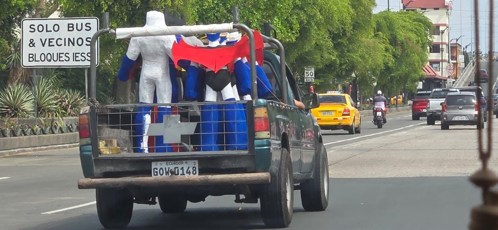 Christmas Morning, I left the Ship, with 5 others, for the first time for an overnight excursion. Have to admit, I didn't like having to pack, I have gotten used to life on the Ship, where it does all the moving for us! We got picked up by our excursion coordinator at the Port of Guayaquil, Ecuador around 10 a.m. We then had a 3-hour drive through central Ecuador to get over to the coast and Puerto Lopez. Our rental - the YIN YANG FLOWER HOUSE was located a 1/2 block from the beach. As we drove through Guayaquil, we saw tons of these papier mâché figurines. They are effigies they use to decorate over the holidays and then burn on New Years Eve to say goodbye to all the things that went wrong, for them in 2024. They vary in price from $10 to $100 and take vendors several days to custom make and paint. After the burn they jump over three times to send the spirits away. Alot are political and silly, regardless colorful!!