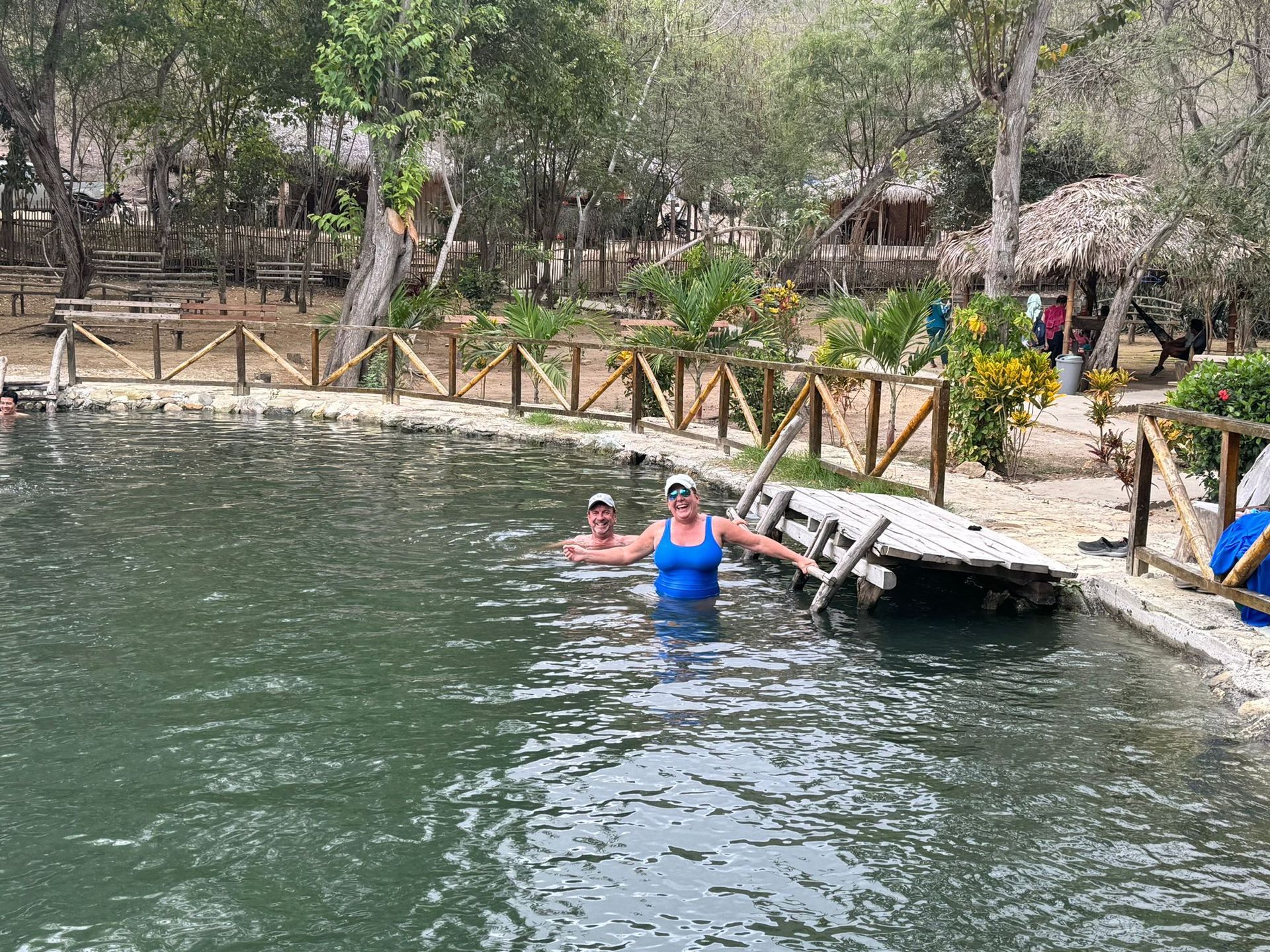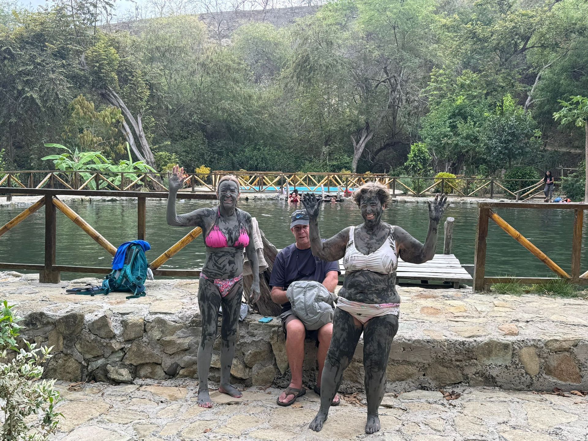 After we dropped our stuff at the house, and had some fruit and bread, we headed to AQUA BLANCA, about 20 minutes away. It's a commune community. There are archeological remains in a small museum, a mineral pool, mud massages available and some snack shops. I totally embraced the mud massage! It felt amazing and left my skin sooo soft. Others (Scott & Kelly) had apple & lavender oil massages and Debbie, just got the mud applied without the massage. A truly unique fun way to spend Christmas Day! I went in mineral pool after mud had dried to wash it off. They also had showers and changing rooms. Then we had a home made feast back at house by 2 local ladies - fresh fried fish, seafood rice, plantains, pork in a peanut sauce, salad and amazing avocados! We all enjoyed some drinks and chatting, getting to know each other better. Scott and I took a walk to beach too - was a gorgeous night!