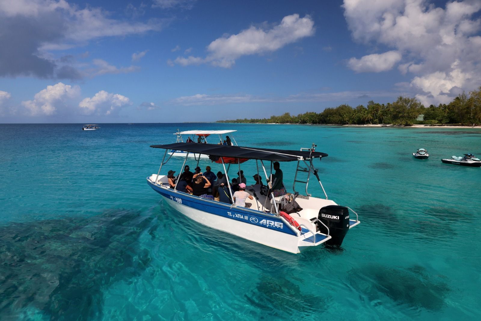 Today felt like we were inside a Computer Screen Saver! You know how everybody has one of those amazing beach shots on their home screens ? I am guessing we were in the place where most of them are filmed! Rangiroa is the 2nd largest atoll in the world, and its lagoon feels like its own ocean, it's huge! It is famous worldwide for "drift" diving and snorkeling, due to its fast moving current, crystal clear water and excellent visibility. We joined a group of 44 Residents in an all day adventure.