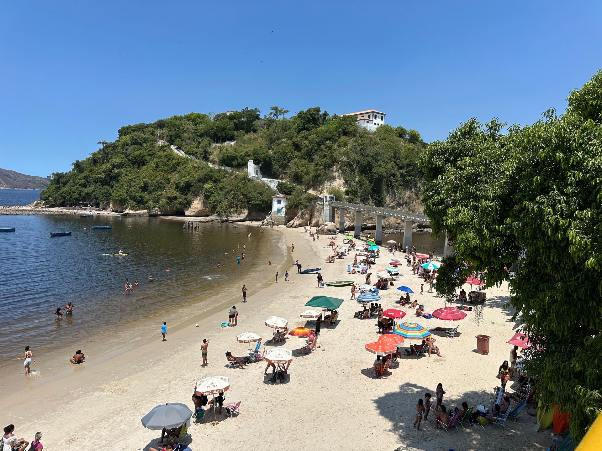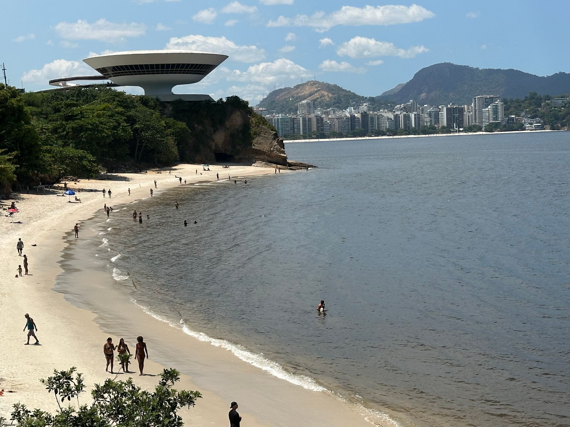 Today we started exploring the area across the bridge from downtown Rio, called Niteroi. It's a lovely suburb area with fabulous beaches and views of downtown RIo. We hired an uber driver to take us around. First stop the Museu de Arte Contemporanea or MAC, which was closed, Luckily I was only interested in the outside of the building - not the art inside. The building sits up on a hill perched over the harbor like a spaceship. The winding entry is best seen from above, hence I borrowed the above image from the web. The build was designed by Oscar Niemeyer. The rest of the photos are mine and show the surrounding beaches and great views of downtown Rio.