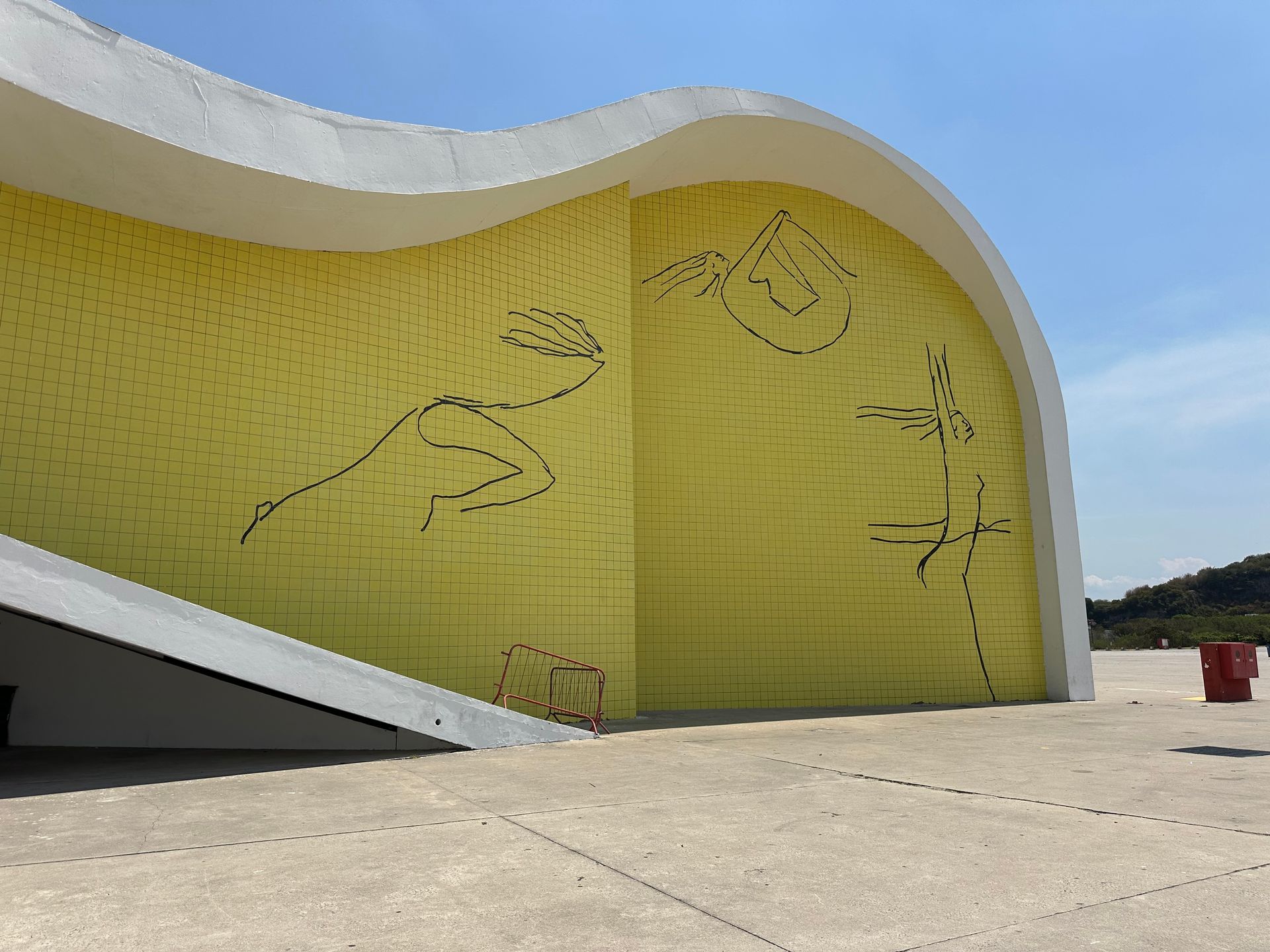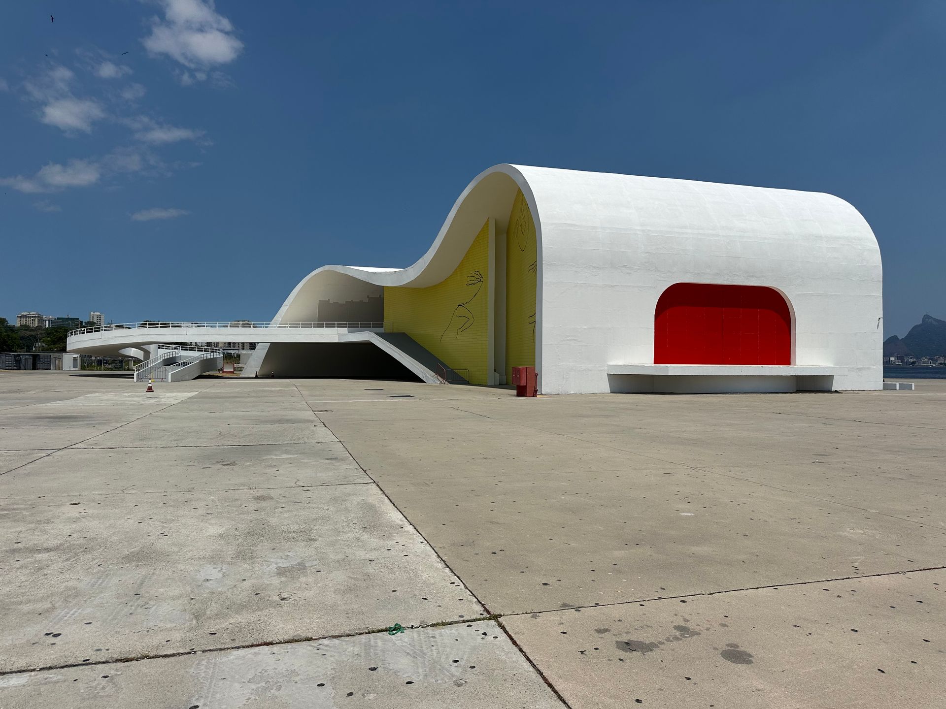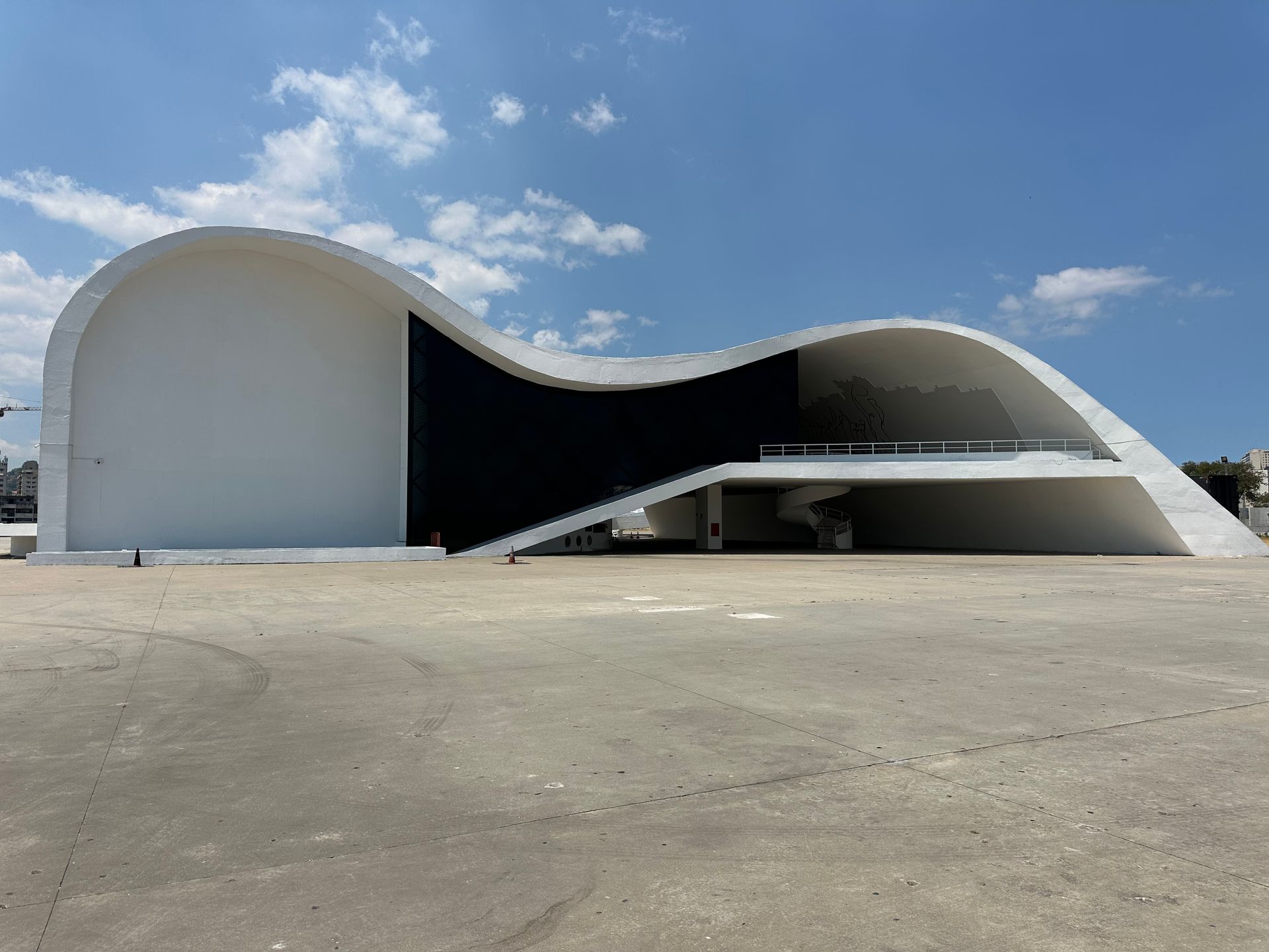 Next just a few minutes away we went to Camino Niemeyer - a strange deserted looking place with odd buildings hard to figure out there use. Architect Oscar Ribeiro de Almeida Niemeyer's work is everywhere in Brazil. He lived from 1907 to 2012 and worked until his death at 104! He is considered one of key figures in the development of modern architecture. He is best known for design of civic buildings for Brasilia, a planned city that became Brazil's capital in 1960 ( and is shaped like a giant airplane) and he was also one of the architects that collaborated on the United Nations headquarters in NYC. He loved exploring with the possibilities of reinforced concrete, as shown below with Camino Niemeyer.