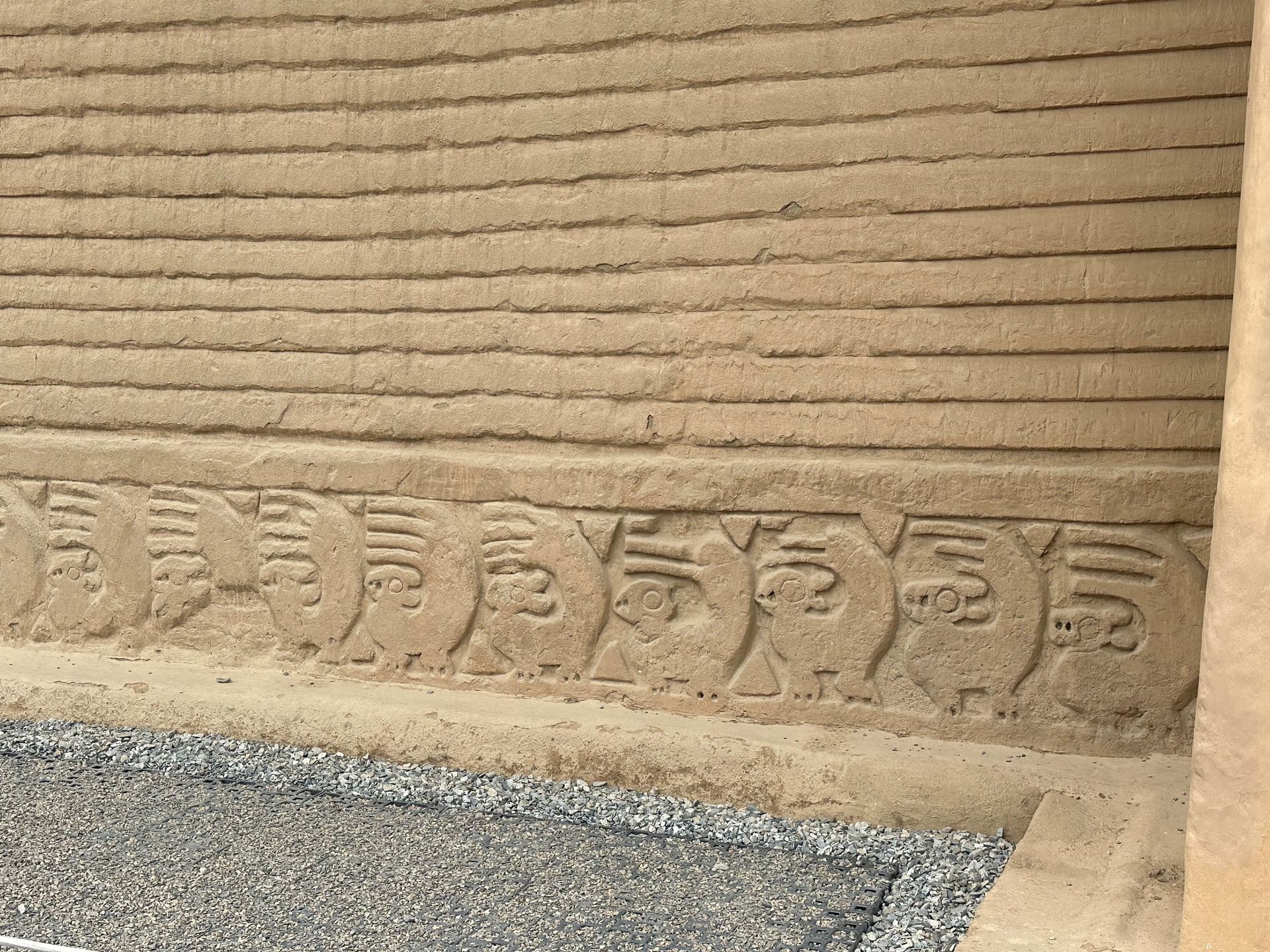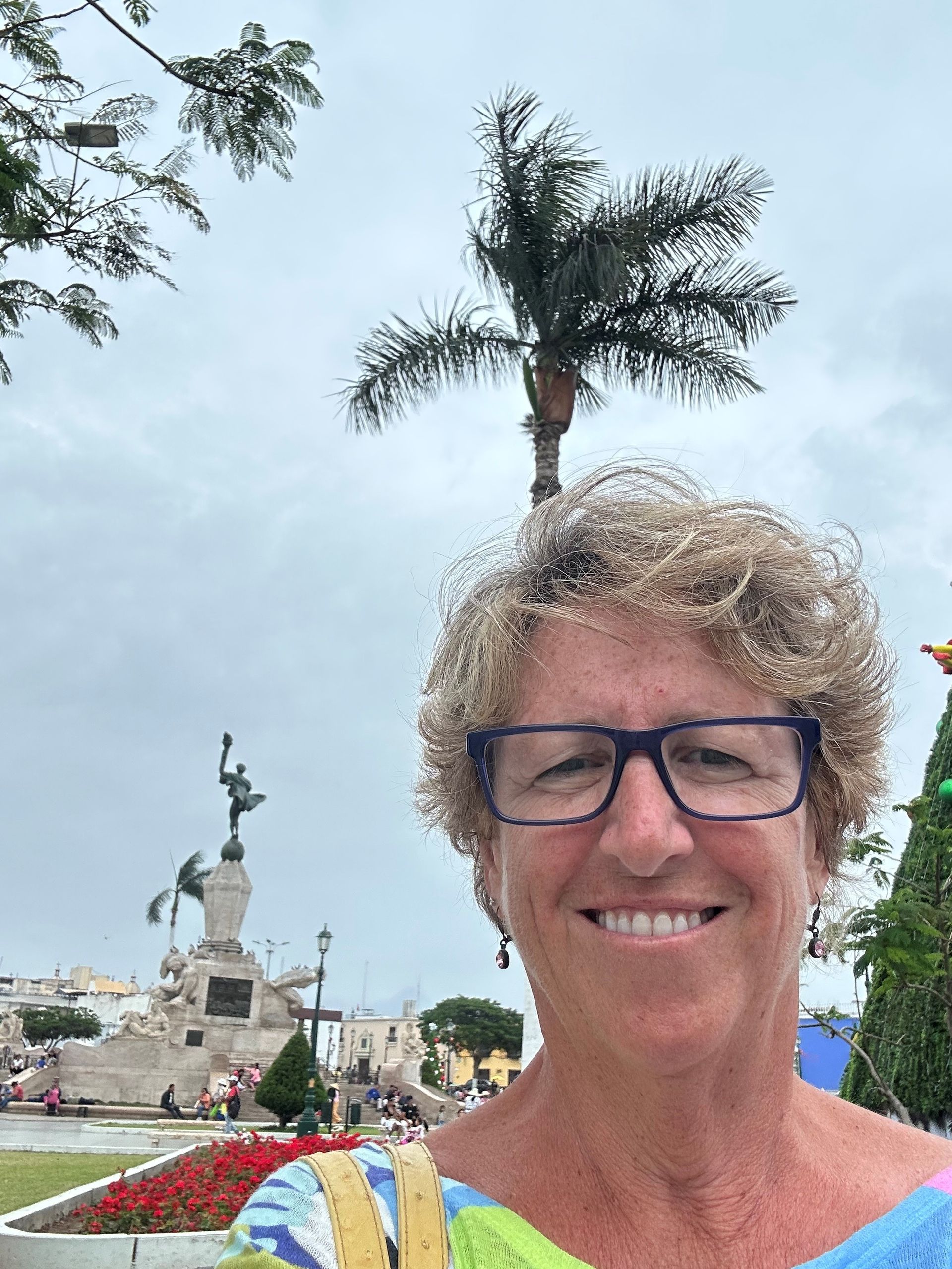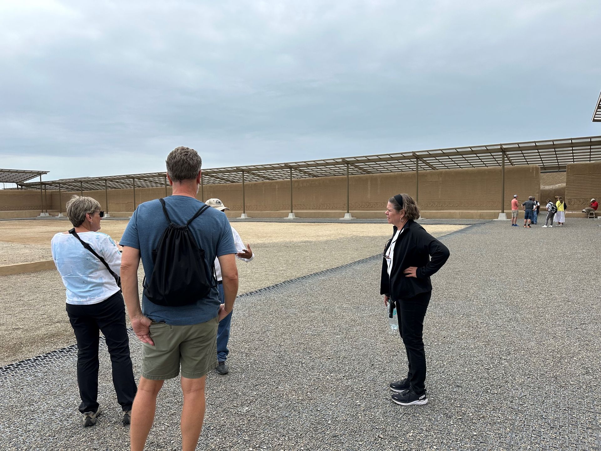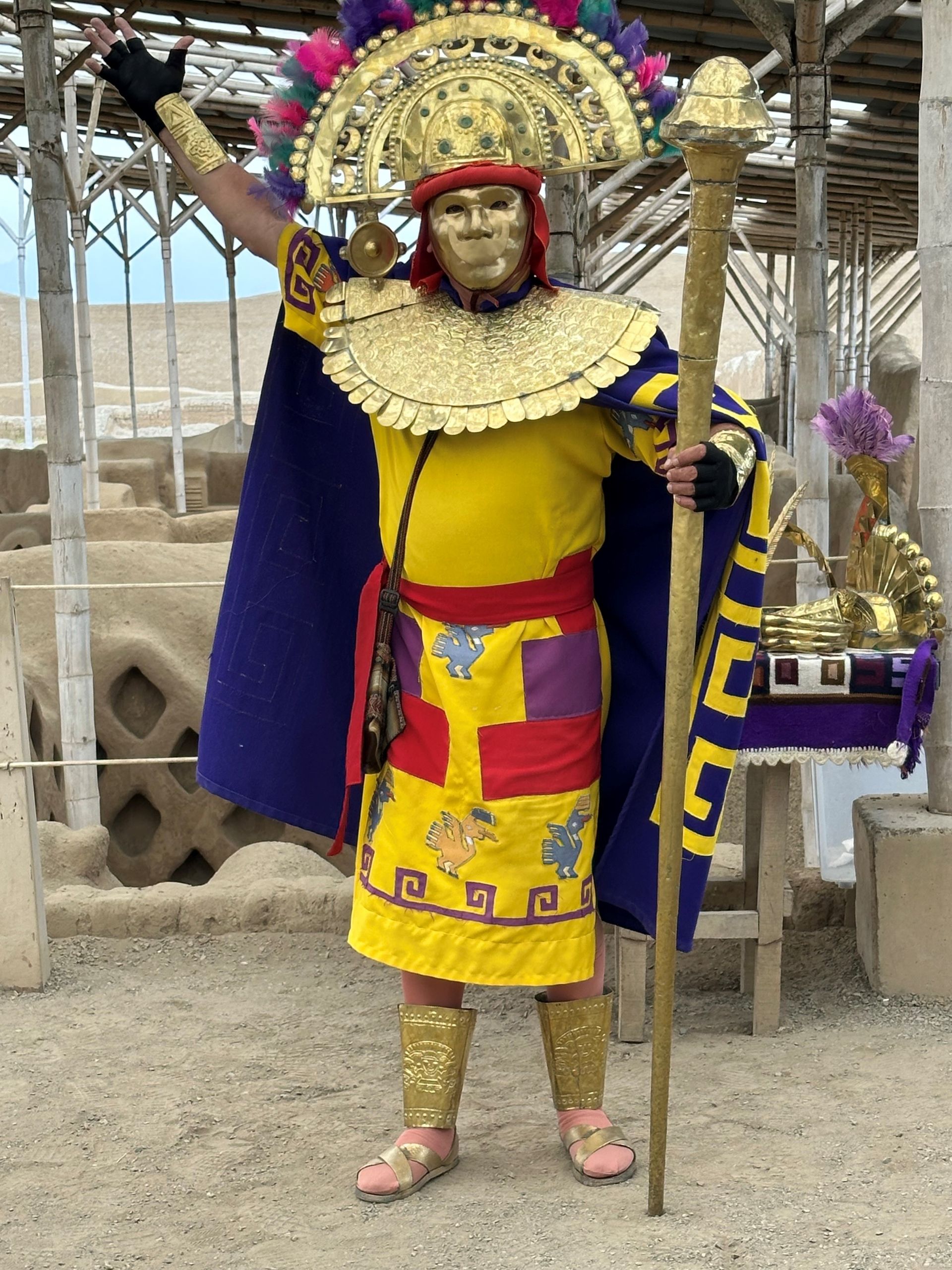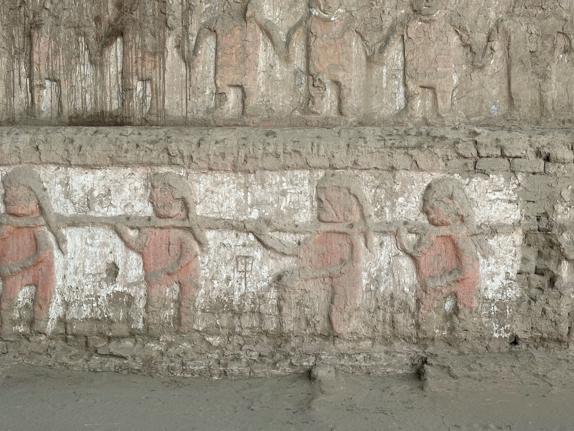 We pulled into the port of Salaverry, Peru around 9 am Sunday, December 29th, despite the reports of awful weather coming out of Peru. We heard there was a tsunami that hit the north of Peru ( just above us) and severe wind gusts and swells were elsewhere. We must have been in a protective bubble, thankfully, because the seas were calm and the winds not a factor. I spent the day with friends Delia, Lauren and Scott exploring ancient ruins and town of Trujillo. We hired a cab for 5 hours to take us around and wait at each locale. The driver didn't speak English but used a translate app through his car speaker to communicate with us and we could use also to ask questions. Love Technology ! First stop was the ruins of the Moche civilization - La Huaca de la Luna - a large pyramid built for worship & human sacrifice when the flooding rain came.