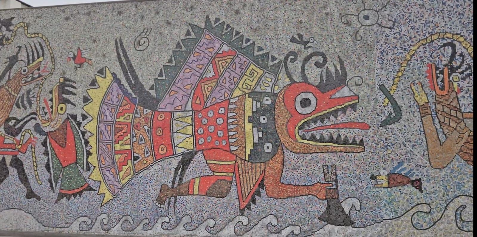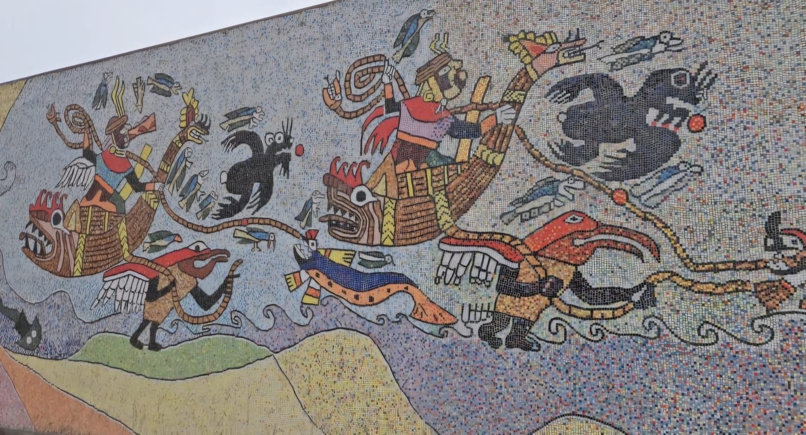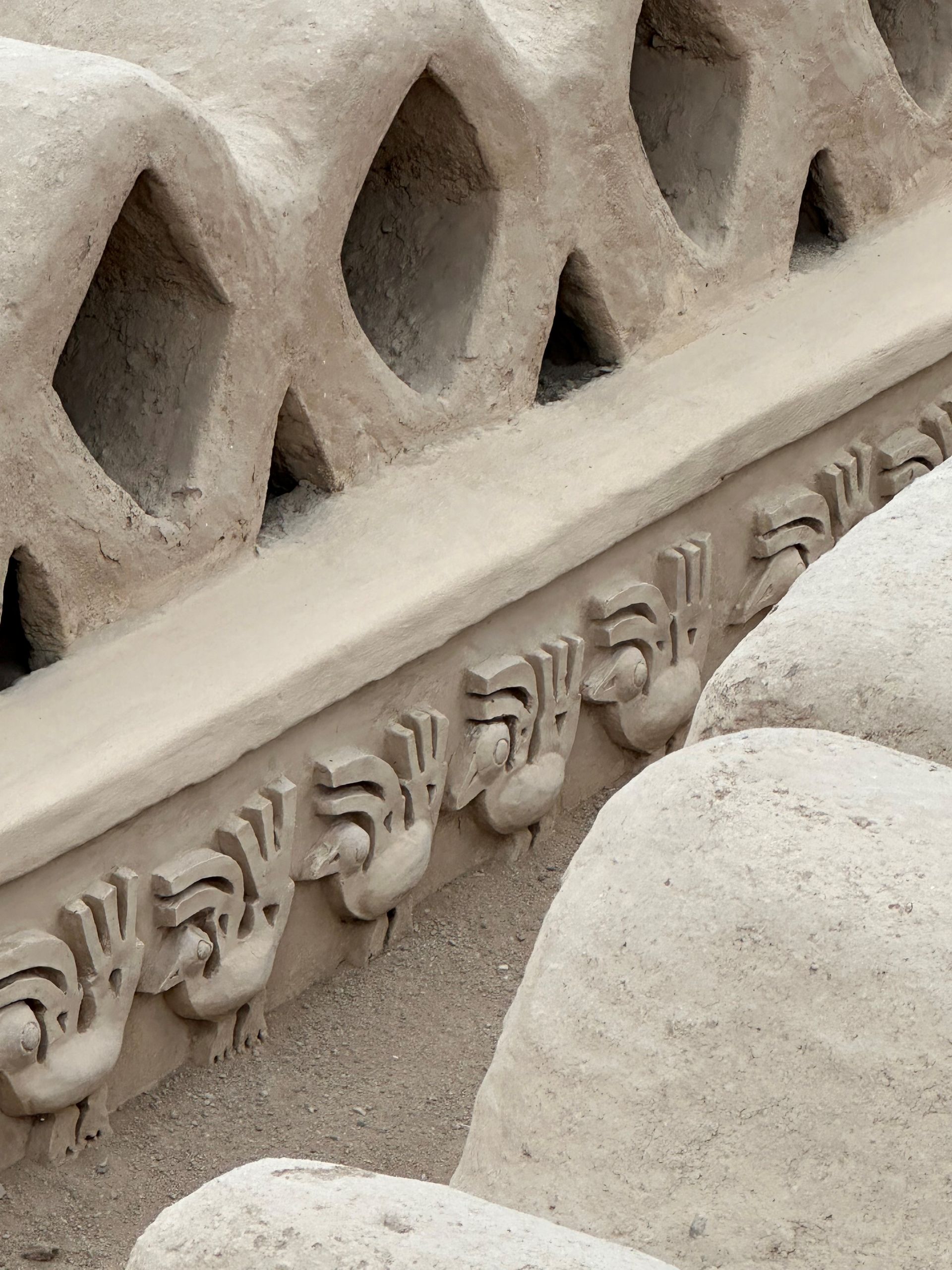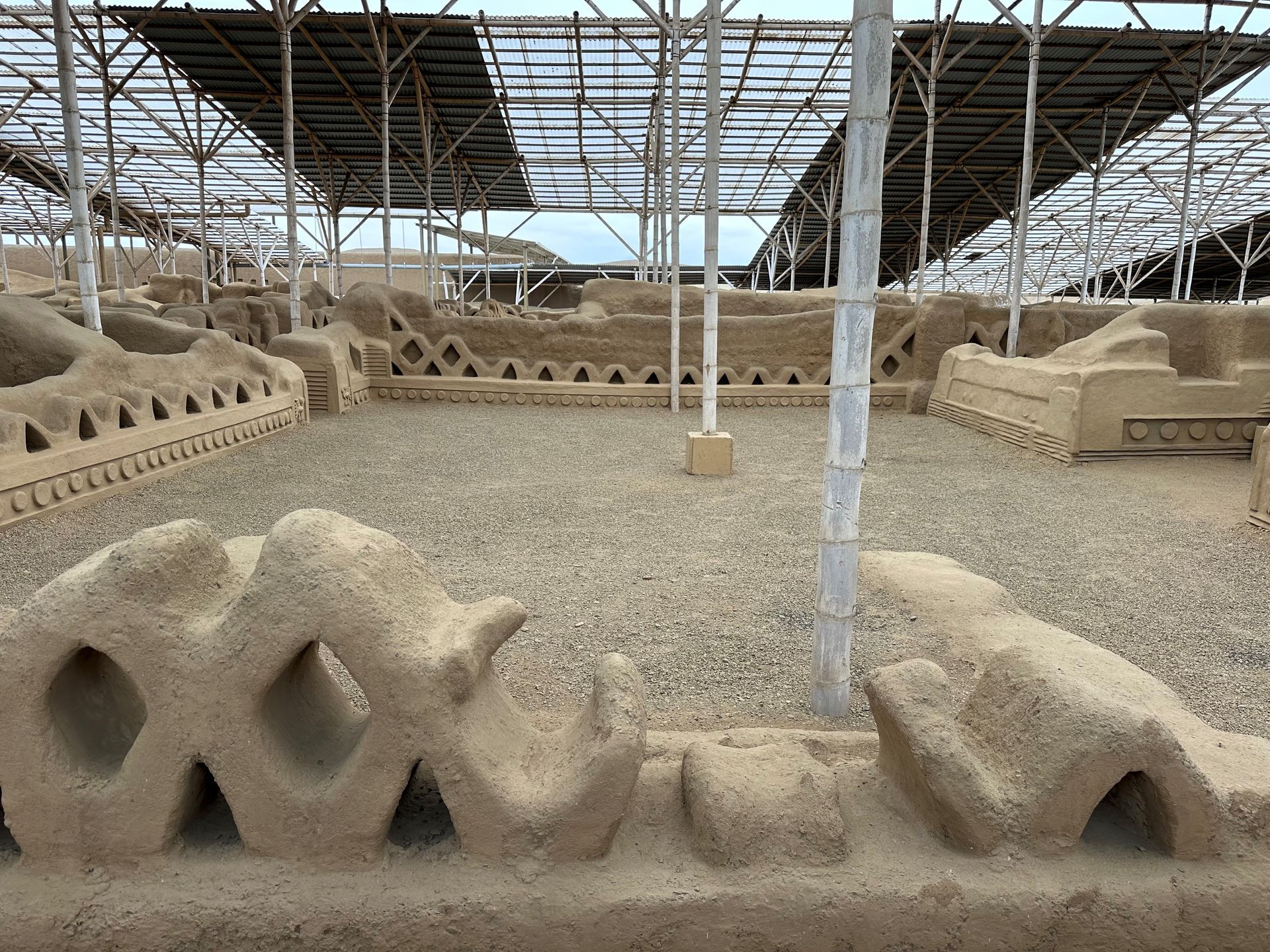 We pulled into the port of Salaverry, Peru around 9 am Sunday, December 29th, despite the reports of awful weather coming out of Peru. We heard there was a tsunami that hit the north of Peru ( just above us) and severe wind gusts and swells were elsewhere. We must have been in a protective bubble, thankfully, because the seas were calm and the winds not a factor. I spent the day with friends Delia, Lauren and Scott exploring ancient ruins and town of Trujillo. We hired a cab for 5 hours to take us around and wait at each locale. The driver didn't speak English but used a translate app through his car speaker to communicate with us and we could use also to ask questions. Love Technology ! First stop was the ruins of the Moche civilization - La Huaca de la Luna - a large pyramid built for worship & human sacrifice when the flooding rain came.