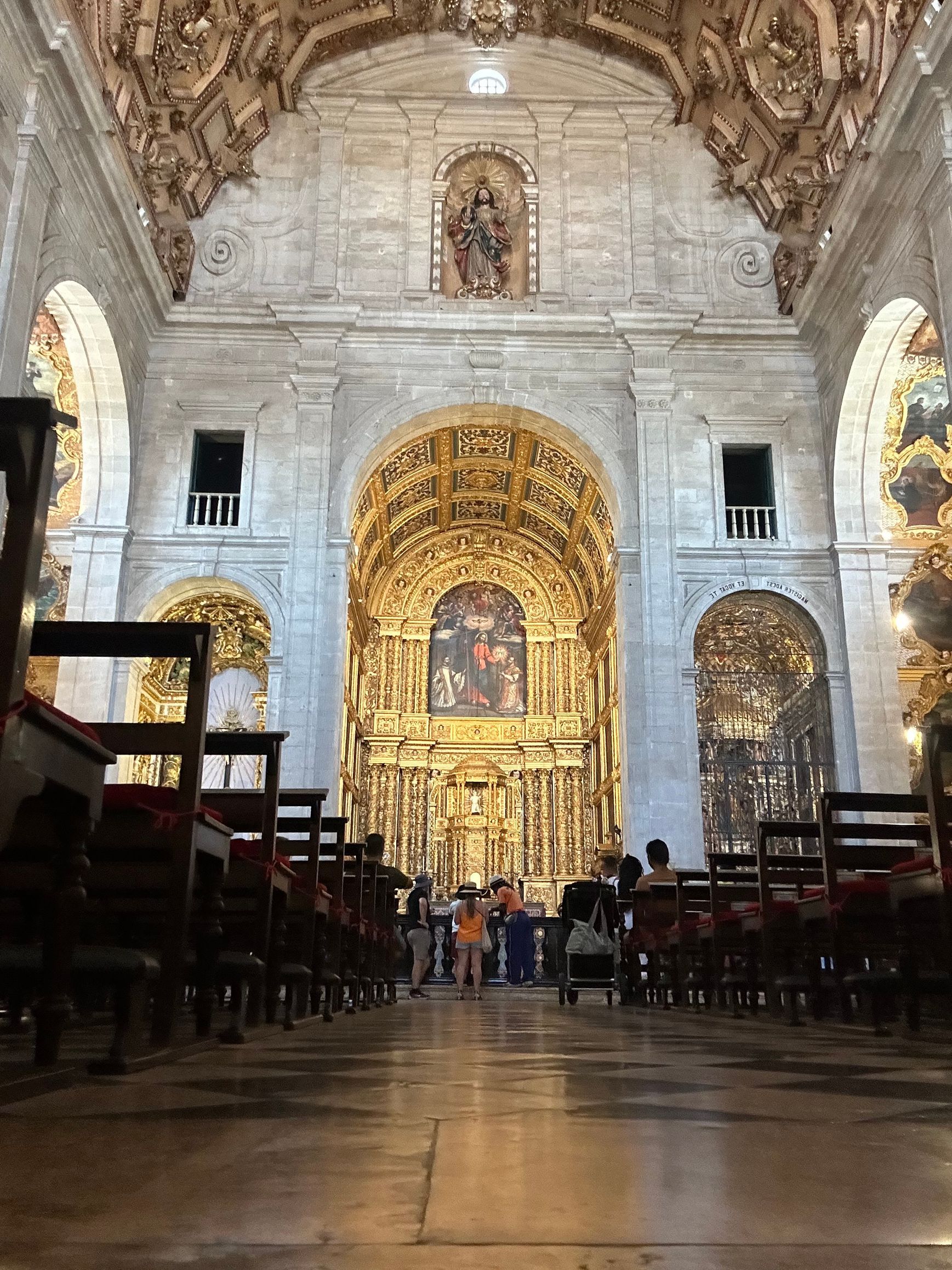 Once atop, there were several squares with a variety of colorful colonial Portuguese buildings, cobblestone streets, and baroque churches. Sao Francisco Church had stunning gold gilt woodwork. Lots of colorful street art and local artisans too!
