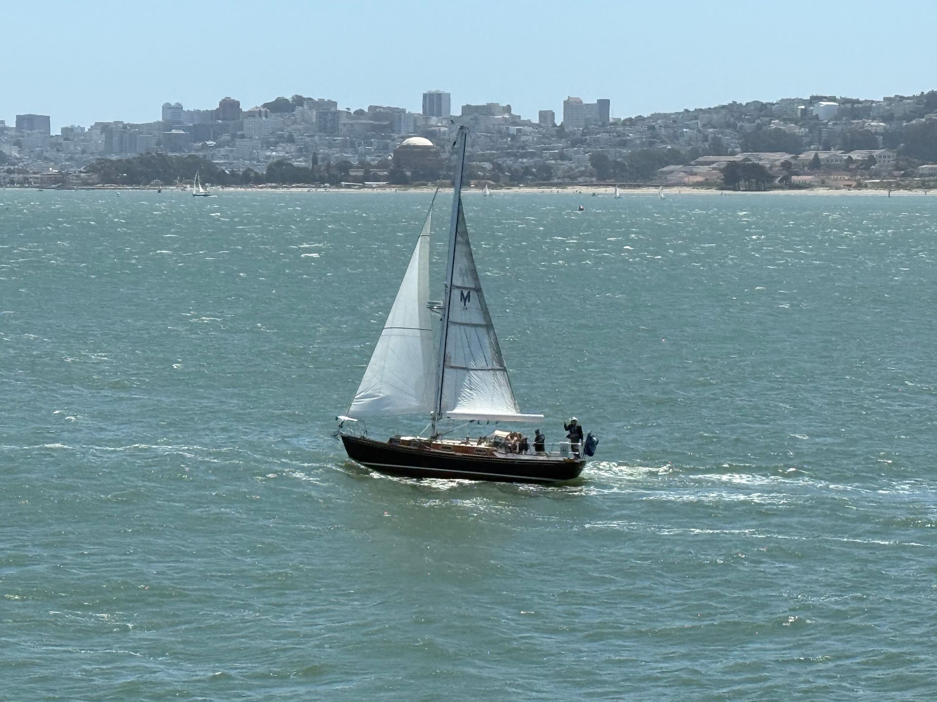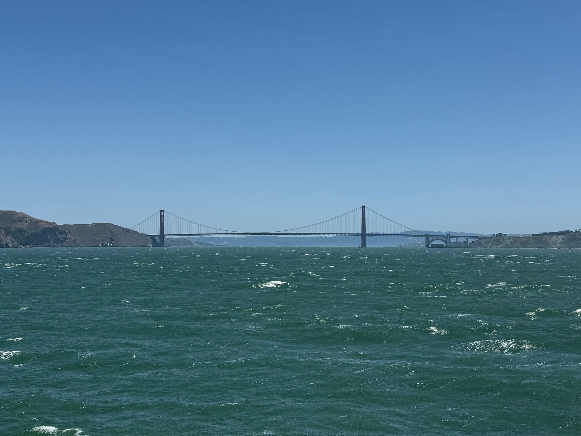 Below are our first views of the Golden Gate Bridge as we sailed into San Francisco! It was a fantastic way to arrive, golden sunshine with so many anxiously watching our arrival. the iconic skyline of San Francisco sparkled. I was out on the tip of the bow on deck 5 as we sailed in and under the Bridge!