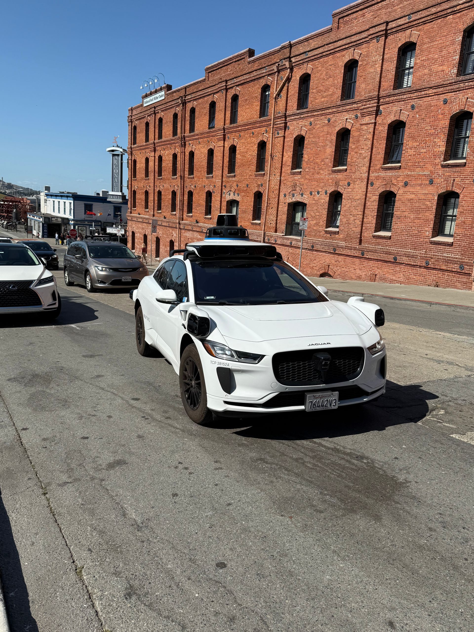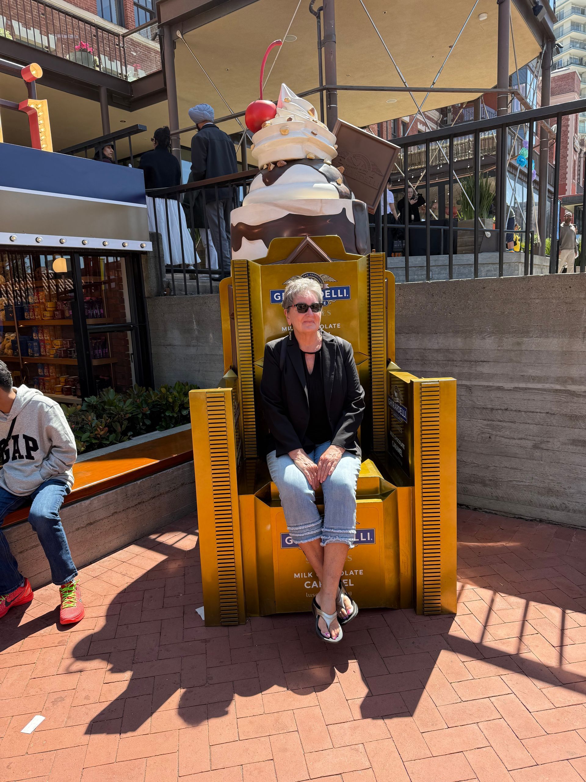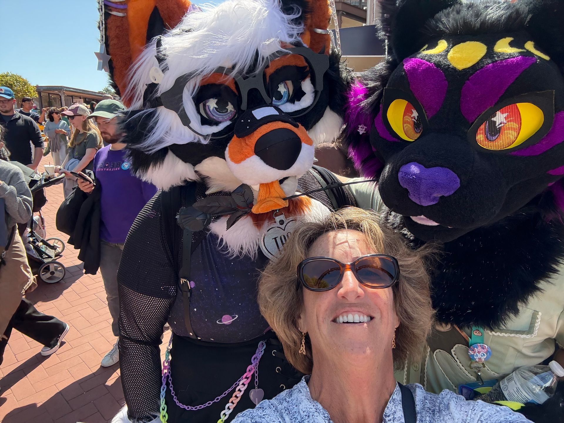 We walked along the piers and headed to Ghirardelli Square, where a Love Fest was in progress. We checked out the famed cable cars and made friends with some Furries before heading to Chinatown in a WAGMO - driverless taxi. In Chinatown we saw the birthplace of the fortune cookie.